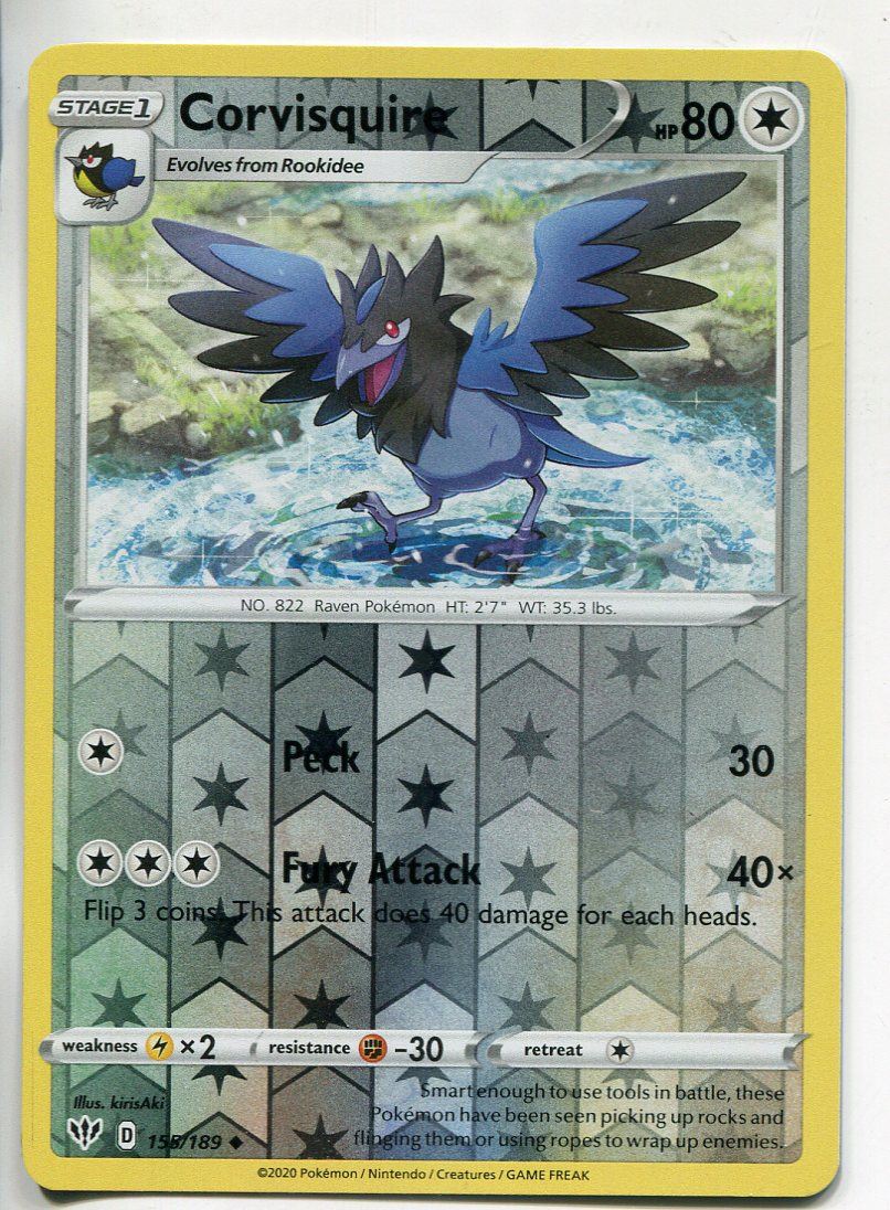 Pokemon TCG Sword & Shield Darkness Ablaze Reverse Holofoil Card #155 Corvisqui