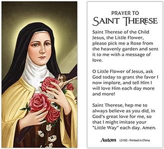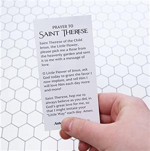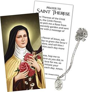 The included holy card is made of sturdy cardstock and features a beautiful image of Saint Therese, making it a cherished keepsake for the recipient.