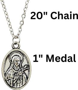 Saint Therese Pendant with Holy Card with 1 Inch Medal and 20 Inch Chain