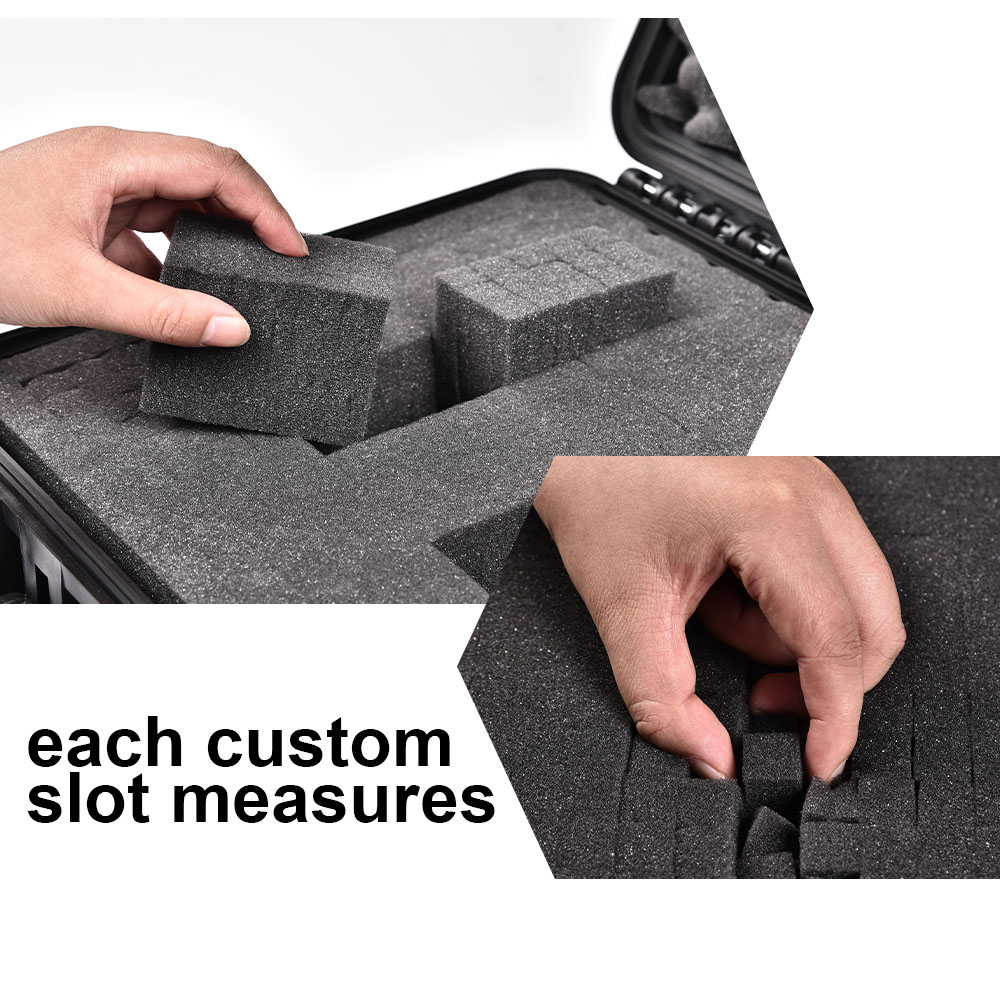 Two (2) 2 1/4" pre-scored layer of charcoal cubed foam enables easy separation and customization; can be customized horizontally or vertically