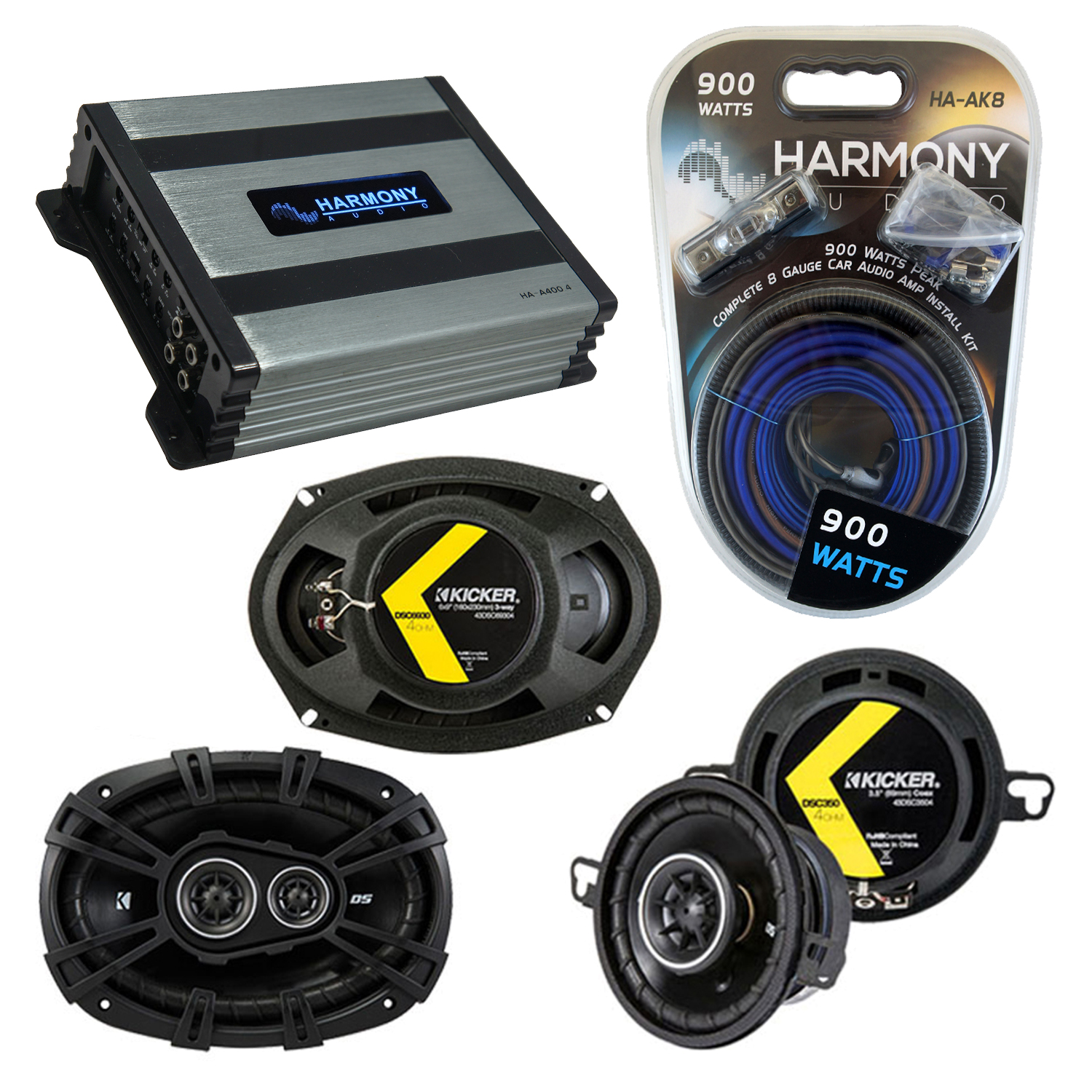 Fits Dodge St. Regis 1979-1981 Speaker Upgrade Kicker DSC35 DSC693 HA-A400.4 Amp