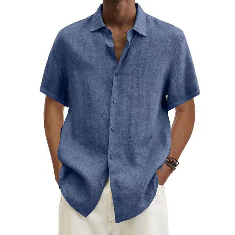 Mens Linen Style Short Sleeve Solid Shirts Casual Fit Formal Dress Top Tee Shirt