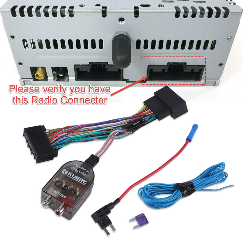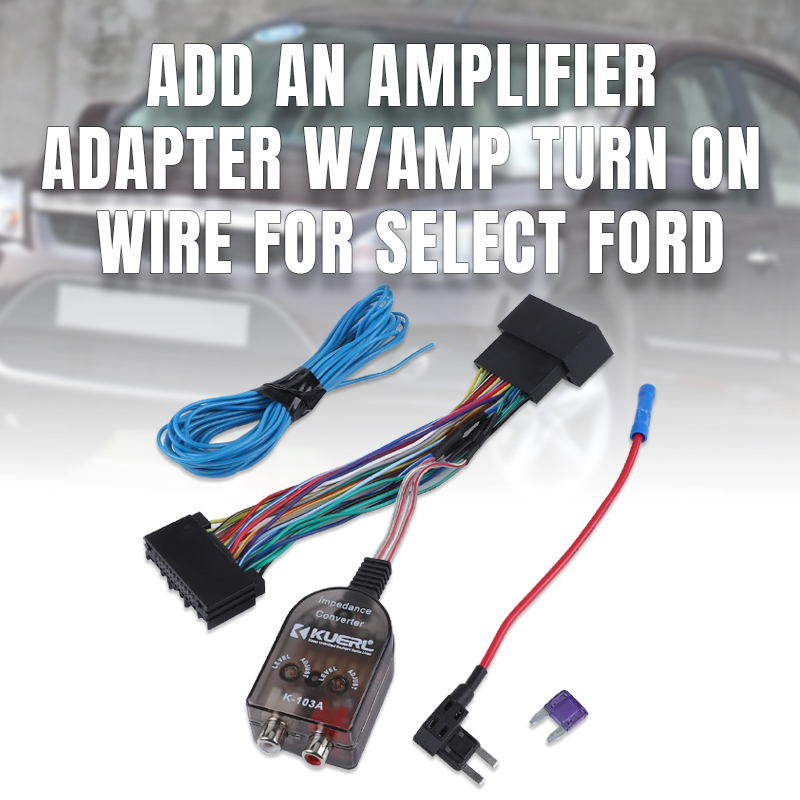 This wire harness provides a connection for one set of RCA cables to provide an audio signal to an external amplifier, as well as an add-a-circuit with remote wire for the remote amplifier turn on wire. This wire, along with a set of RCA cables, is run to your aftermarket amplifier. All that's left for you to do is connect the main power wire from your battery and ground. (Not included)