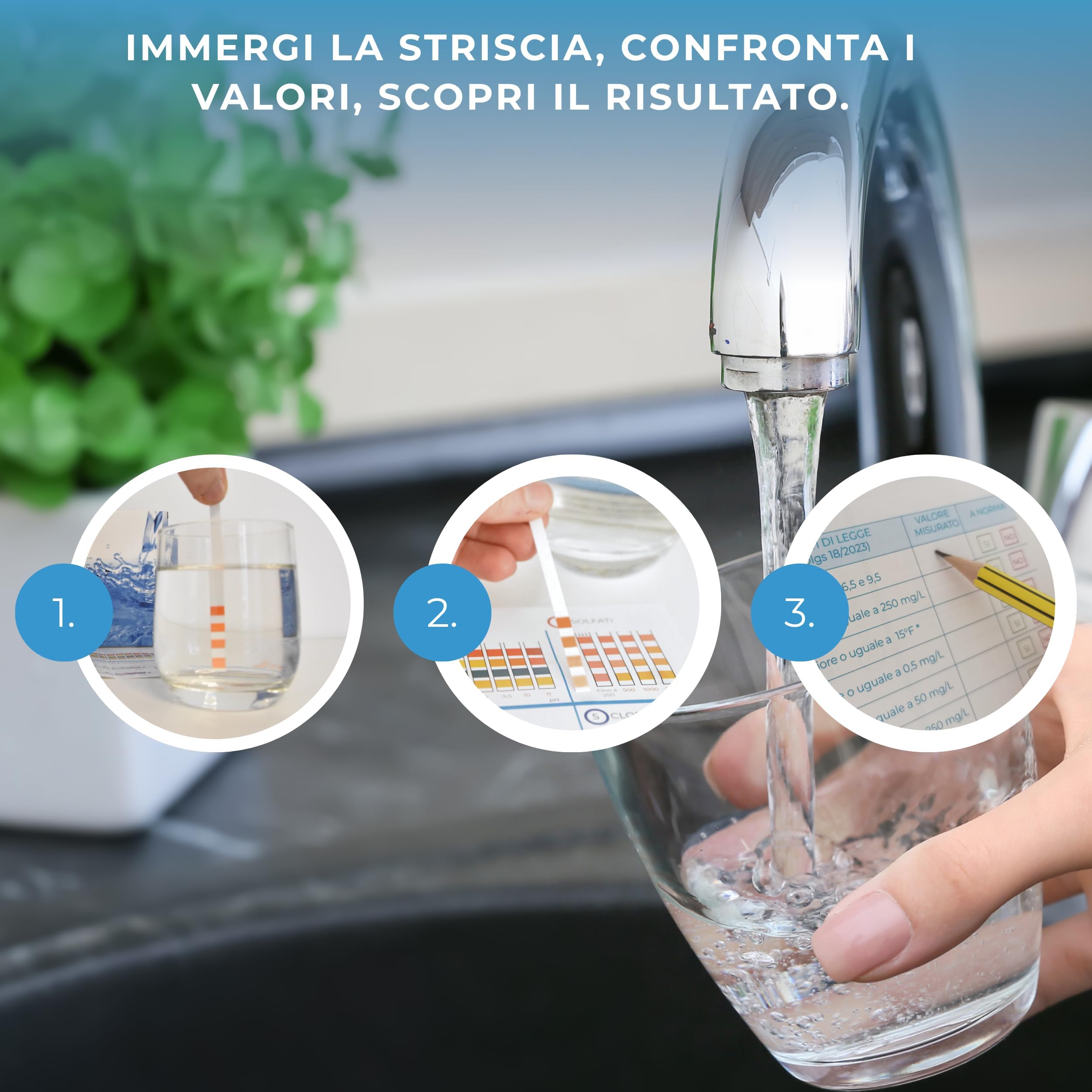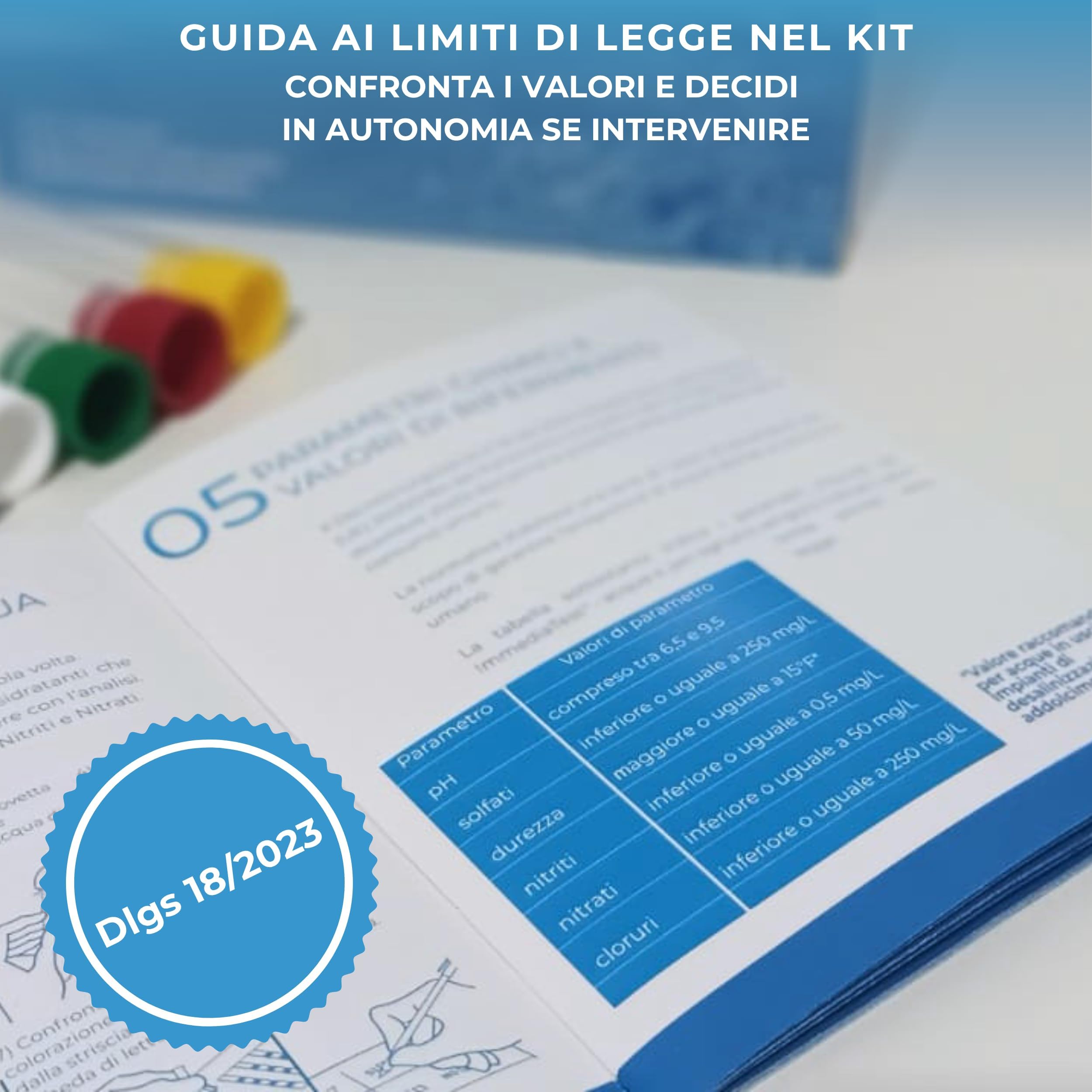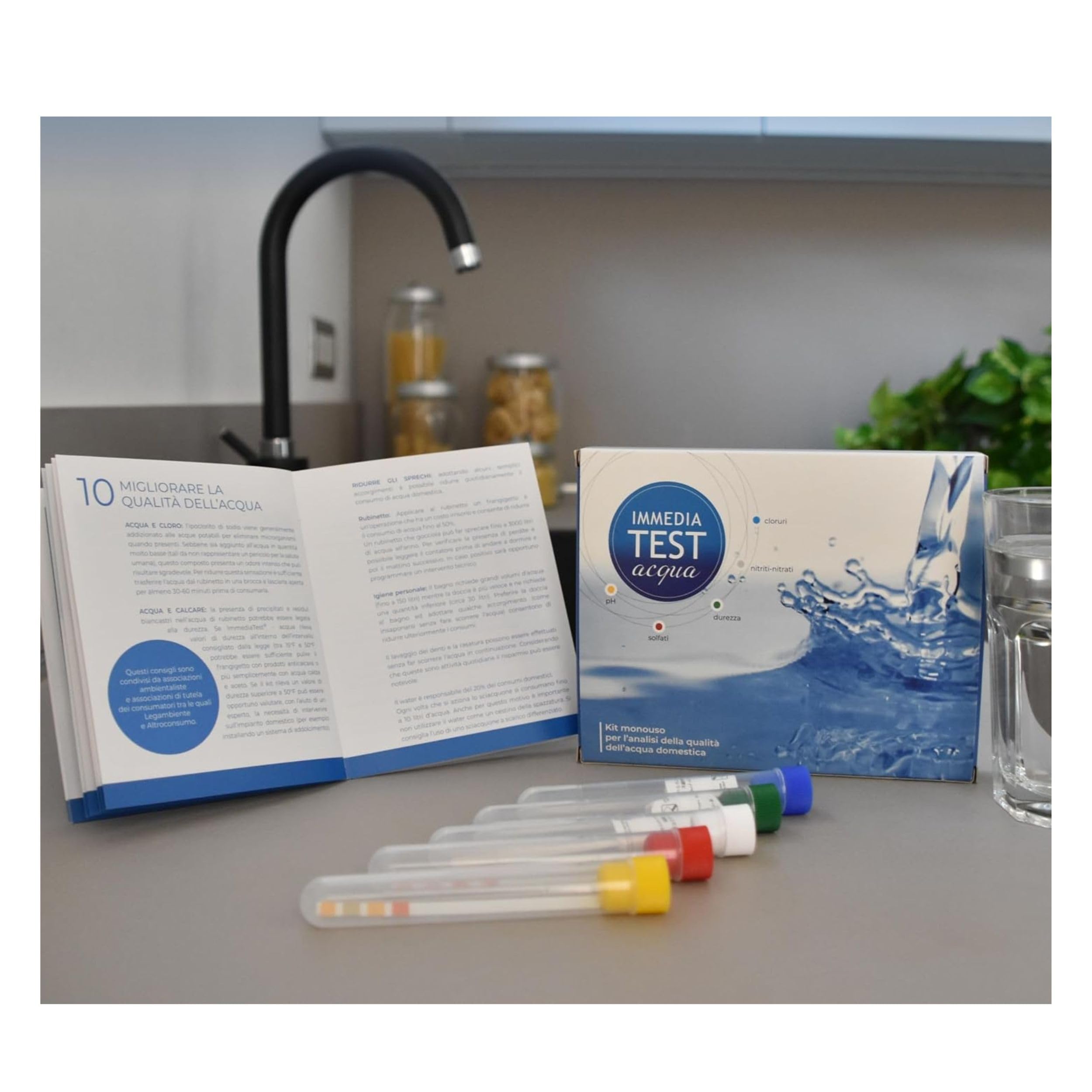 Kit Analisi Acqua Risultati Immediati, Monouso, Facile da Usare, Guida Inclusa | Test pH, Durezza, Nitrati, Nitriti, Cloruri, Solfati - Esclusivo brevetto Universitario