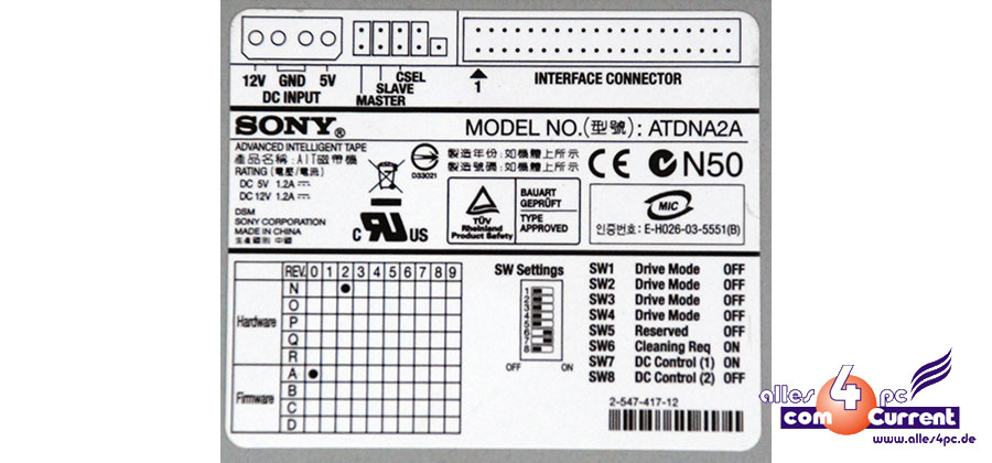 40/104 GB AIT drive for data backup Sony Atdna2a