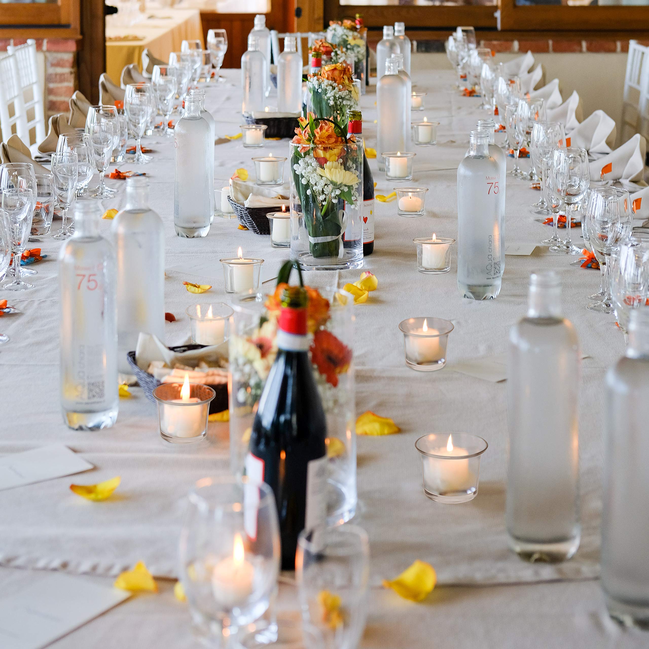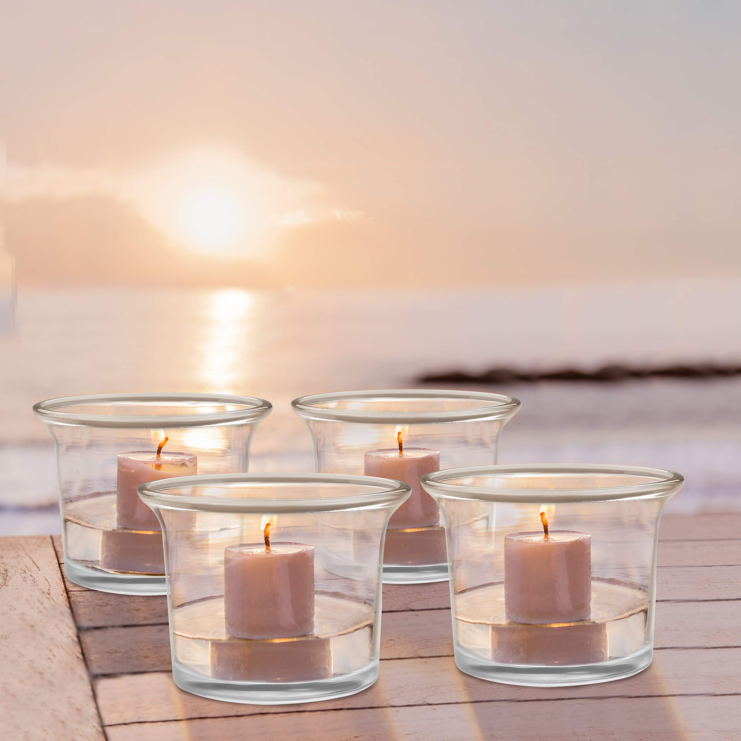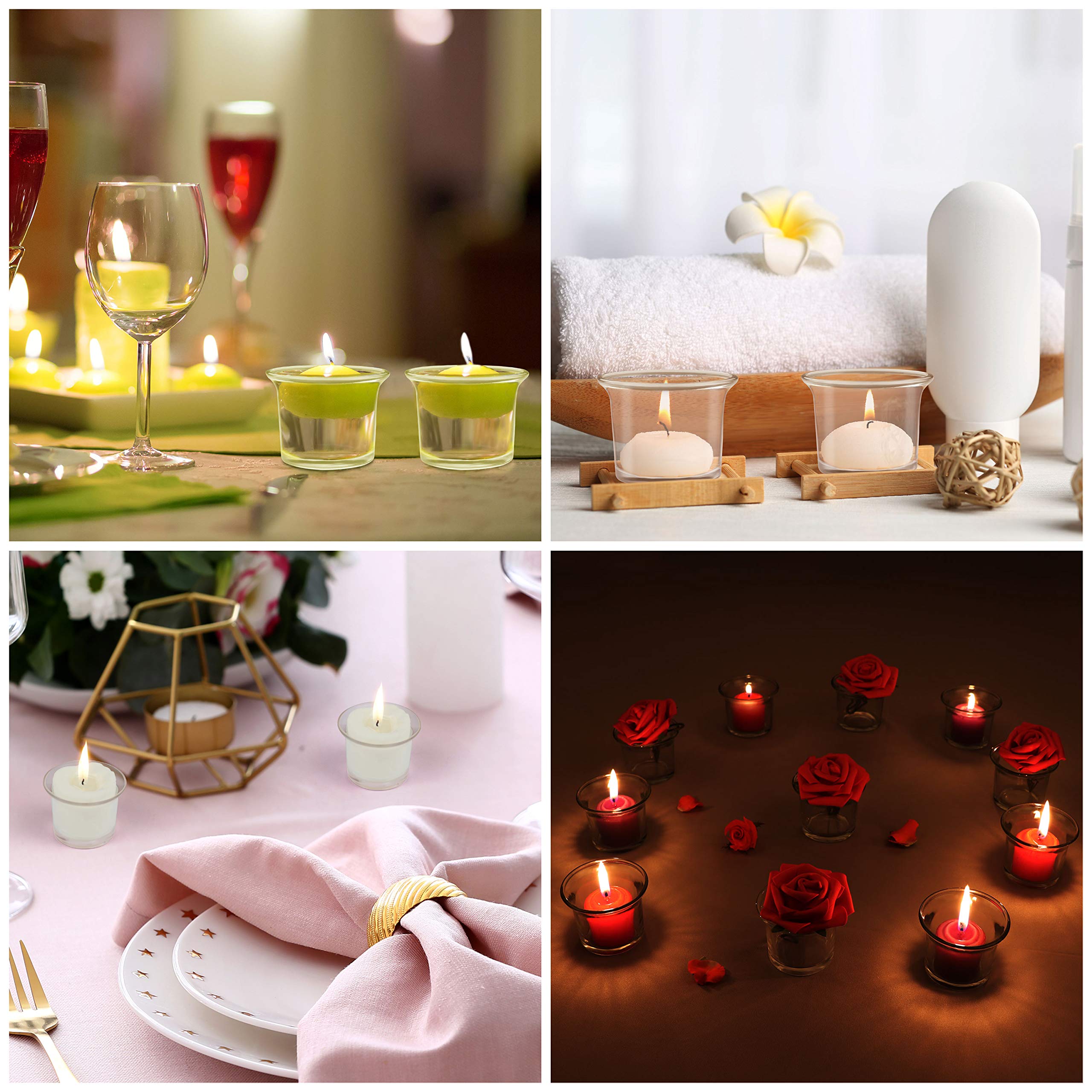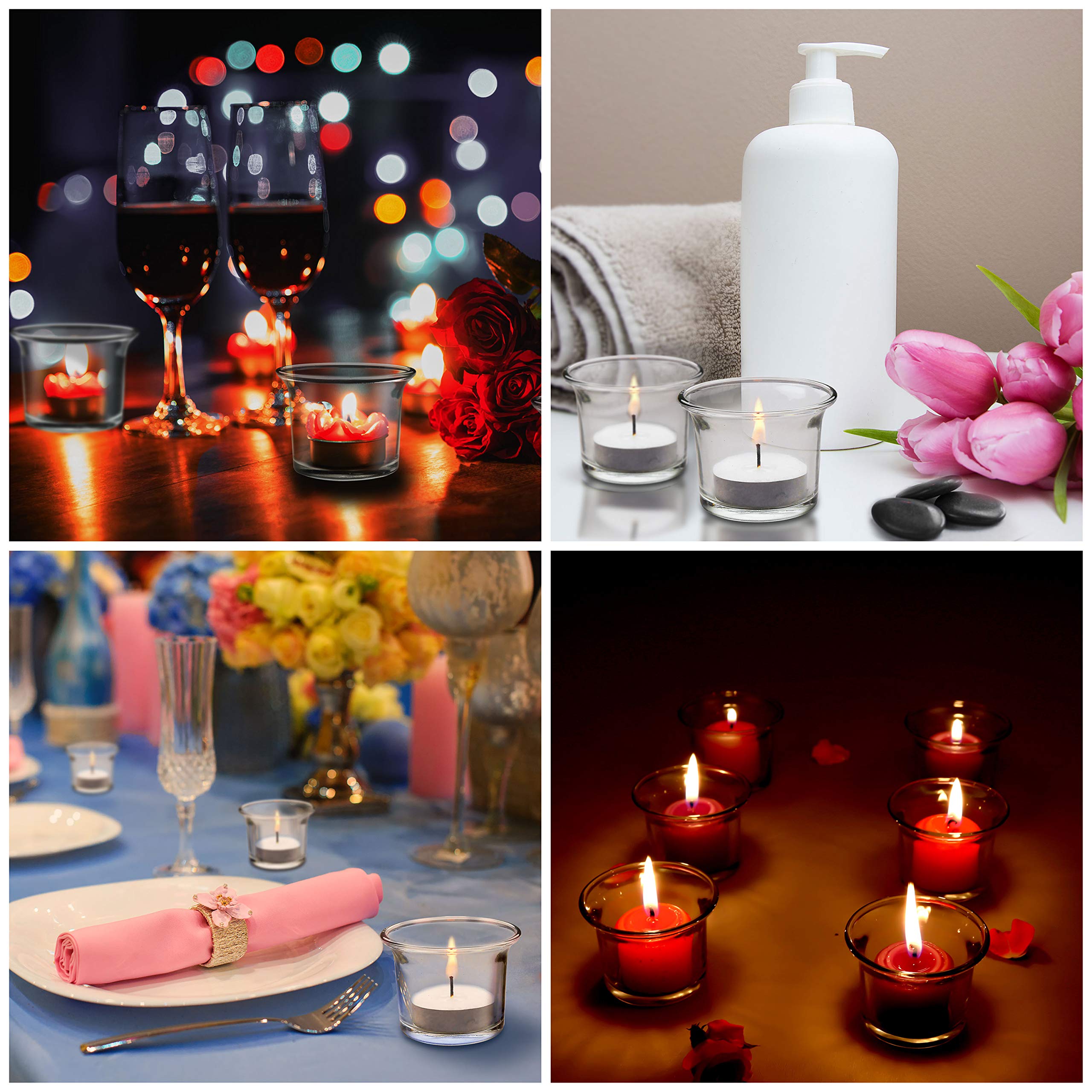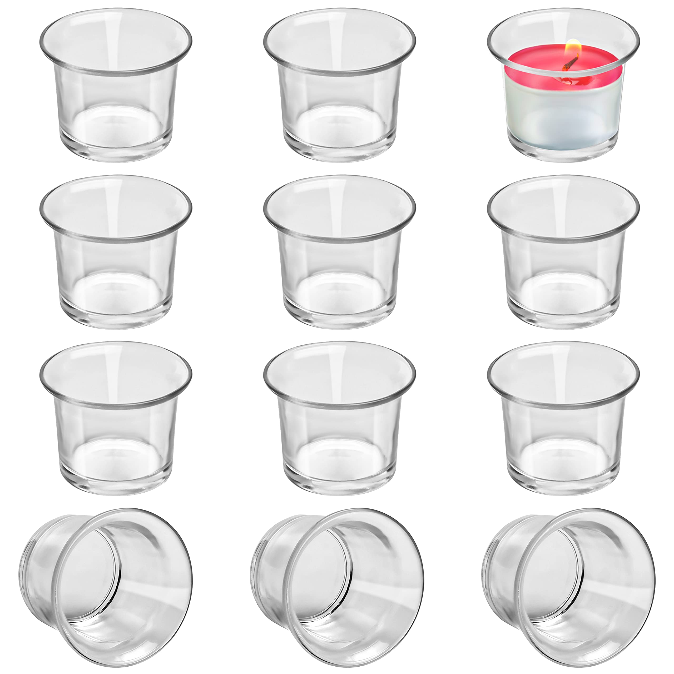 Belle Vous Portacandele in vetro (Set di 12) – Bicchiere per candela, riscaldatore piatto in vetro trasparente, ogni bicchiere a candela misura 4,5 x 4,5 cm, per matrimoni, cene, spa e meditazione