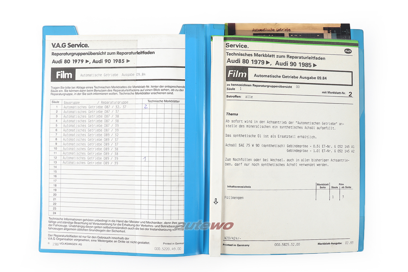 Audi 80/90 Typ 81/85 Reparaturleitfaden automatische Getriebe
