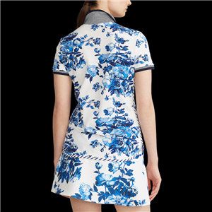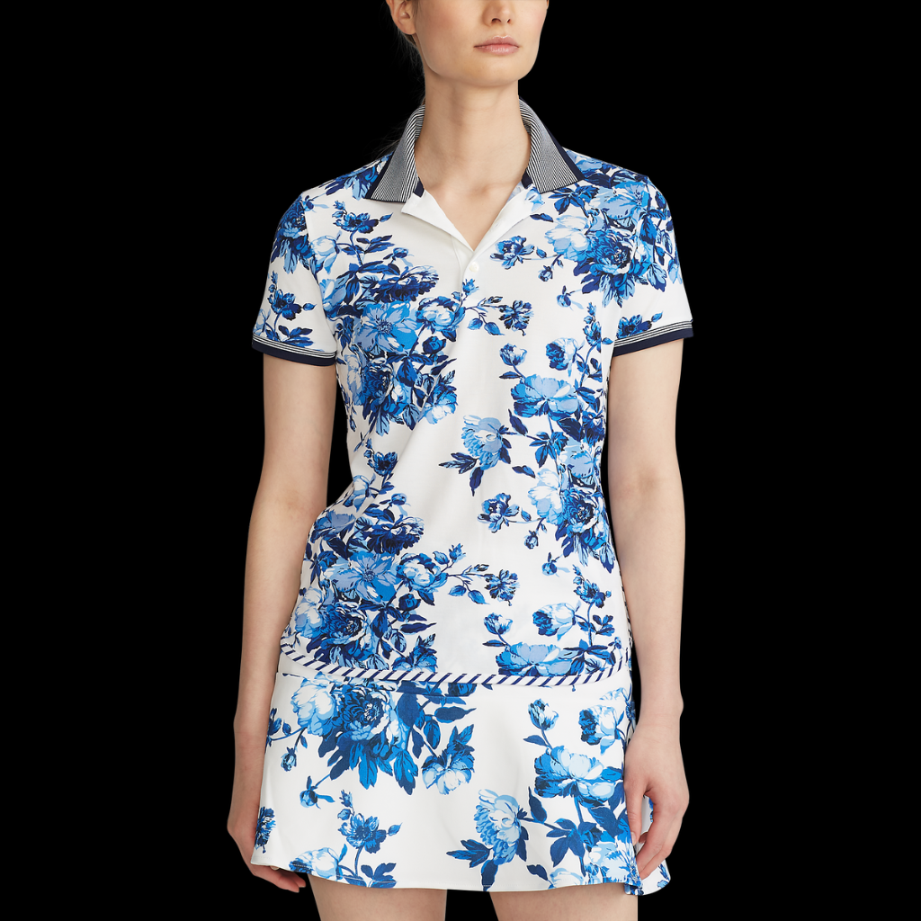 This version of our signature Tailored Fit golf Polo shirt is crafted from breathable piqué with a cool-tone floral print. The fabrication is designed to remove moisture from the body, keeping you cool, dry, and comfortable on the links.