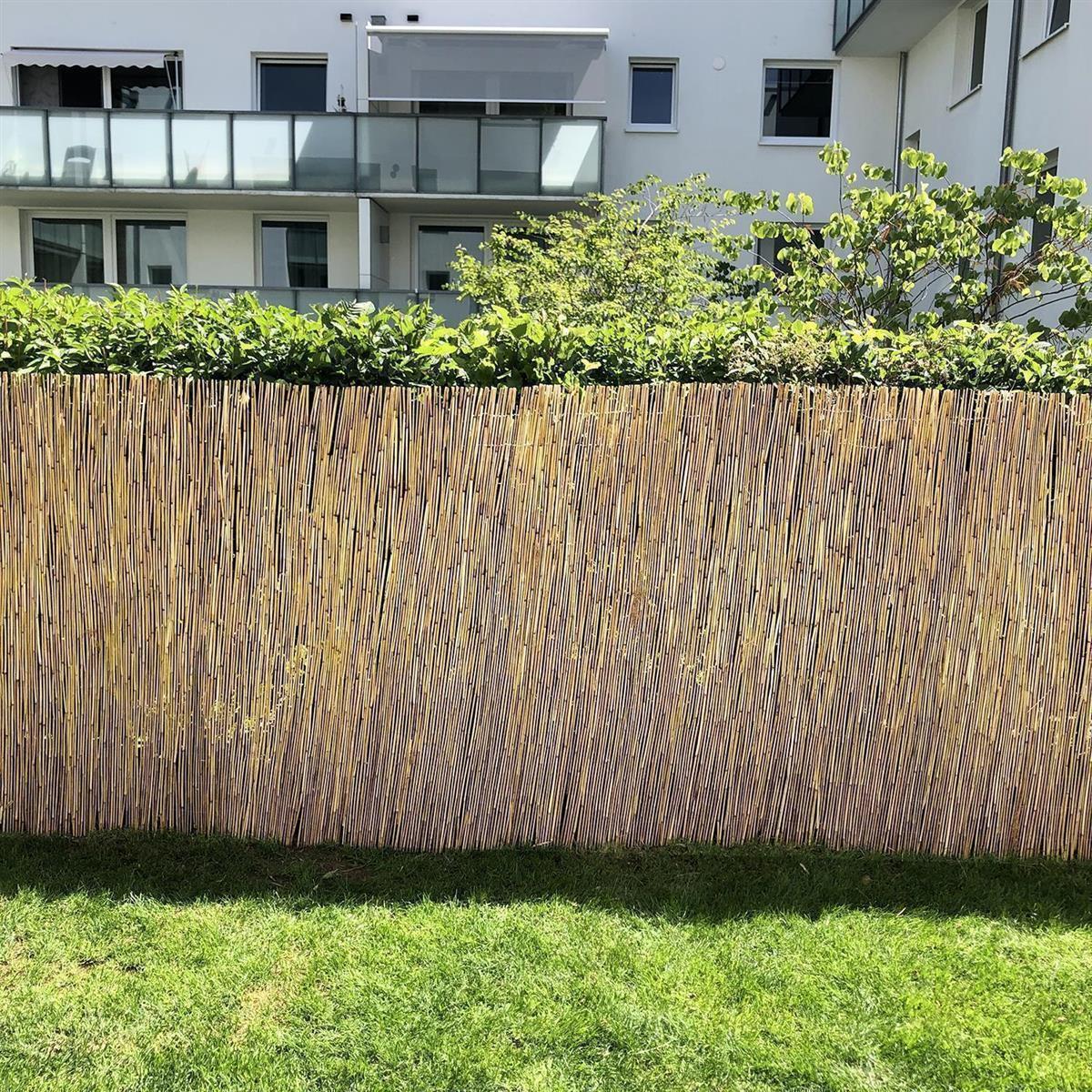 Die Schlifrohrmatte Weidenmatten und Bambusmatten bestehen aus ausgesuchten, unbehandelten Stämmchen und sind mit verzinktem Draht verwoben.Sie eignet sich hervorragend als Sichtschutz oder Dekoration im Garten und Balkonbereich.Der praktische Drahtüberstand am Rand erlaubt es, die Schlifrohrmatte Weidenmatte und Bambusmatte unkompliziert an Wänden, Zäunen oder Garagen zu befestigen.
