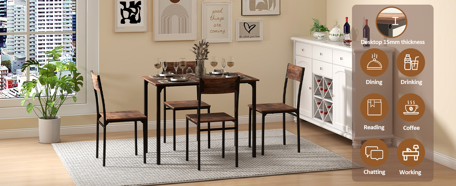 - 【Wide Application】With the 4 pieces dining table set, you could comfortably seat up to your families around the table and enjoy the dining time. Perfect for restaurant, living room, kitchen, bistro, bar.