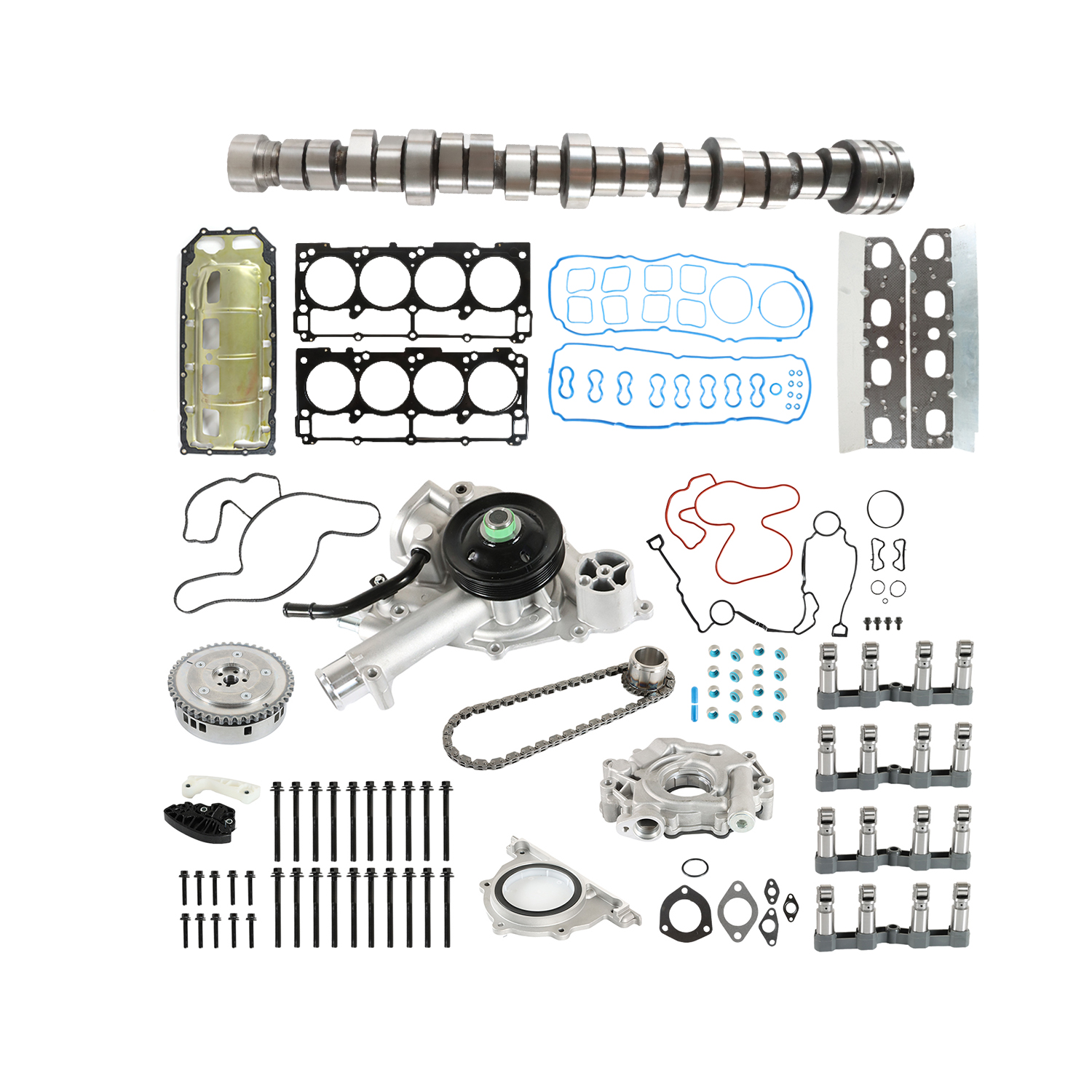 Length(cm): 61.0, width(cm): 31.0, height(cm): 37.0 Weight(kg): 22.0 Material: Metal/Rubber Color: As picture Placement on Vehicle: Engine Number of Teeth: 5.7L Link Quantity: OHV Fits For 5.7L NON MDS Hemi Engine Dodge Ram 5.7L Hemi Engine 2009-2015Dodge Durango 5.7L Hemi 2009Chrysler Aspen 5.7L Hemi V8 2009 Built to strict quality control standards 100% factory tested 100% Compatible with OEM Parts, meets Original Equipment Manufacturer (OEM) Standards Constructed from high quality metal for a long service life Withstands extreme temperature fluctuations to provide a reliable seal Individual gaskets are die cut to each application and have elastomeric sealing beads in critical areas (where applicable) The complete kits, which meet OEM performance requirements, ensure a quiet and maintenance-free experience The camshaft and valve gear components should be washed in solvent, to remove grease and dust accumulated during transport, to ensure a clean installation. Dry the parts thoroughly before installation, laying them out on paper towels or shop rags(Don't soak hydraulic lifters)Double-check that the sprockets are properly aligned with the chain and that everything is perfectly lined up What causes timing chain noise Timing chain noise is commonly most noticeable during cold startup of the vehicle when oil pressure and oil flow is at its lowest. Excess slack in the timing chain can cause a rattling sound or even a clanking sound if the slack is severe enough to cause the chain to contact the timing chain cover. If the engine is equipped with a hydraulic timing chain tensioner, the noise may disappear or lessen as the engine oil warms up and the tensioner removes some of the slack. If the timing chain wear is great enough so the tensioner can no longer compensate for the slack, the noise may continue even after warming upSpecifications