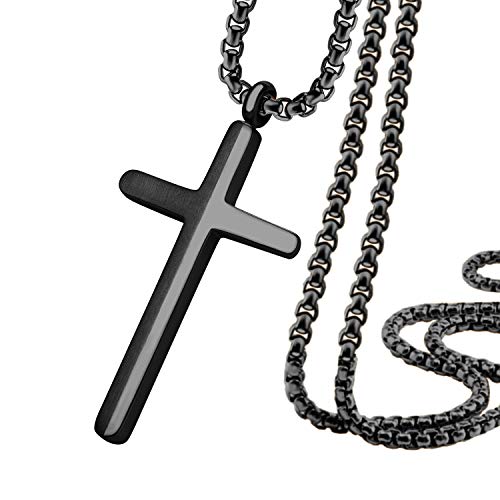 ✔️ DESIGN - Trendy cross necklace for boys, men, women & girls, this stainless steel cross pendant designed in two side by side textures of a brushed and polished surface, creating an attractive contrast. It complemented with a beautiful box link chain and available in a range of lengths from 18 to 24 inches.