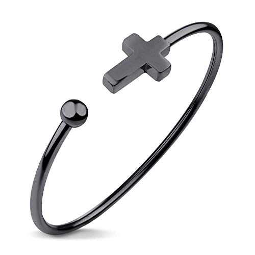 This stylish unisex bangle is well designed with delicacy that features Christian cross on one end and ball on the other end. It is an open cuff bracelet that is suitable for everyday wear and special occasion such as church and other ceremony.