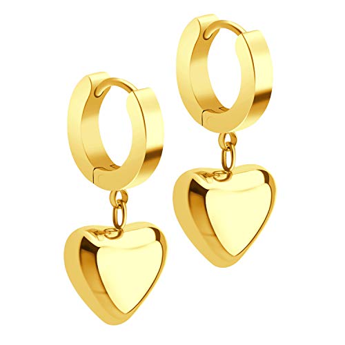 ✔️ DESIGN - lovely huggie dangle earrings with a heart charm, these stainless steel heart hoop earrings designed with a mirror-polished puffed heart charm dangling below an elegant polished huggie. Thin 0.8mm ear pin makes these lovely nickel free earrings convenient to take on and off.