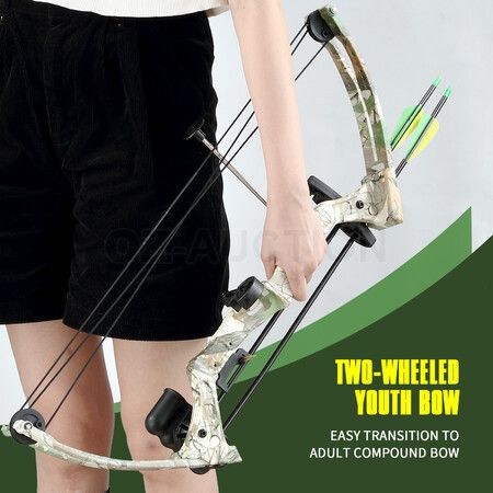 Experience seamless comfort and perfection when shooting with this Compound Bow Arrow Set Archery Hunting Sports Equipment. Made from the highest-quality materials, this archery set is built to deliver superior performance, stability, and durability. With all accessories included, you'll be ready to hunt or practise in no time. Further, this compound bow is adjustable in both draw weight and length, allowing users to focus on their target. Moreover, other excellent features such as an aiming sight, a brush arrow rest, and an 80 to 100 fps IBO rating make this archery equipment safe and comfortable for beginner archers. Weighing only 2 pounds, you can easily take the archery bow anywhere you want, like an archery range, to start your target practice.
