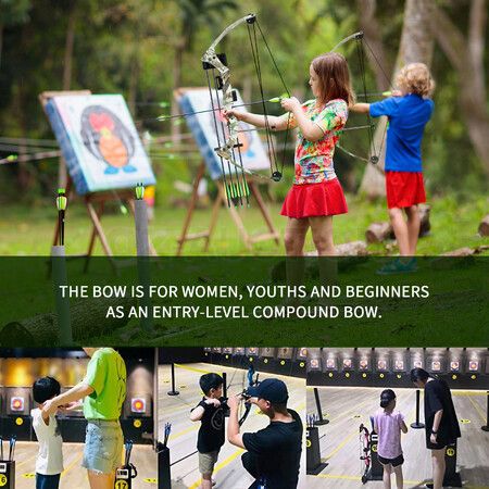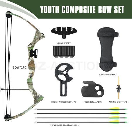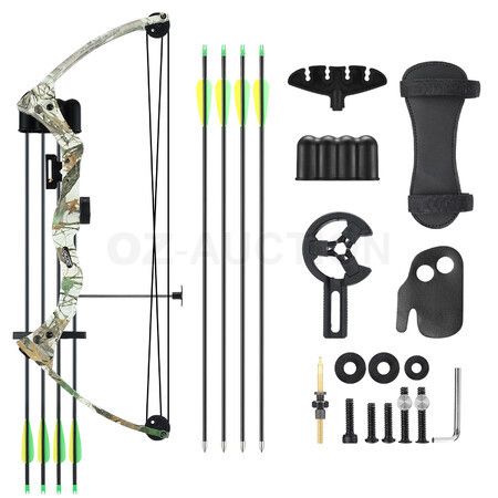 1 x compound bow 1 x aiming sight 4 x 25" aluminium arrows 1 x brush arrow rest 1 x arm guard 1 x fingerstall 1 set x quiver |