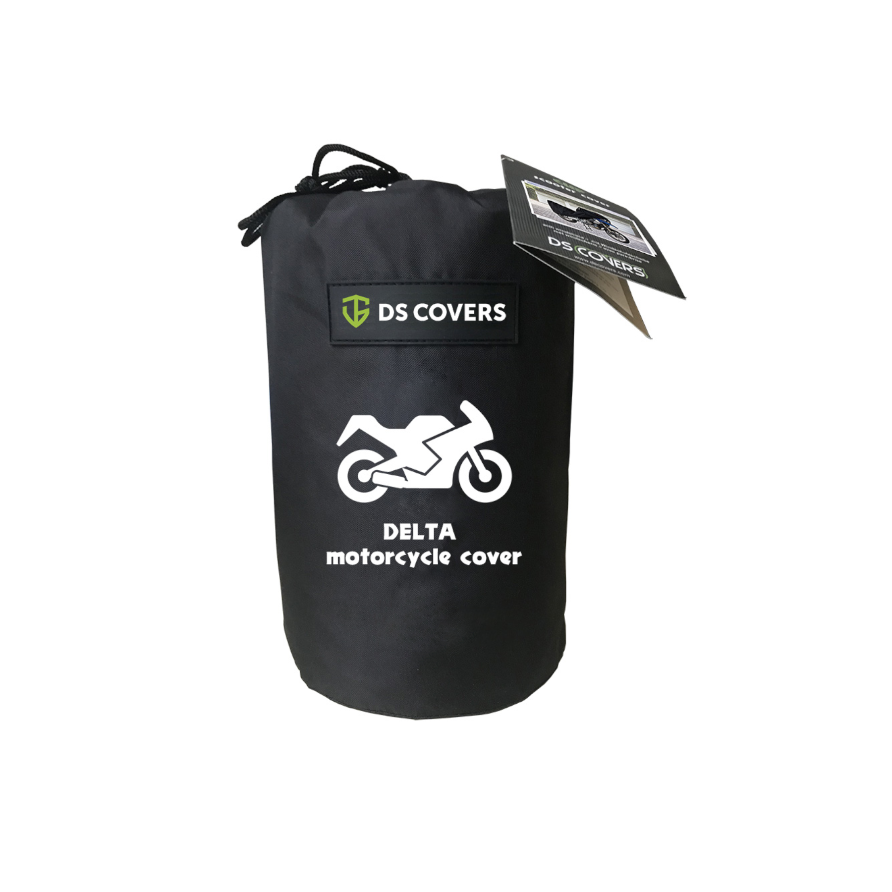 The DELTA motorcycle cover is our basic motorcycle cover. In contrast to the ALFA motorcycle cover, the DELTA motorcycle cover is not lined and therefore very lightweight (approx. 1 kg). This makes the cover ideal to take with you on a motorcycle holiday, for example. The protective cover has lock holes to lock the cover on the motorcycle and is furthermore provided with a sturdy elastic hem and an adjustable snap closure that prevent the cover from blowing away in stronger winds. Condensation, which can form in some situations, can escape through the ventilation flaps at the top of the cover. Sizes are based on an average size representation of vehicle capacity. Careful consideration should be made before purchase.