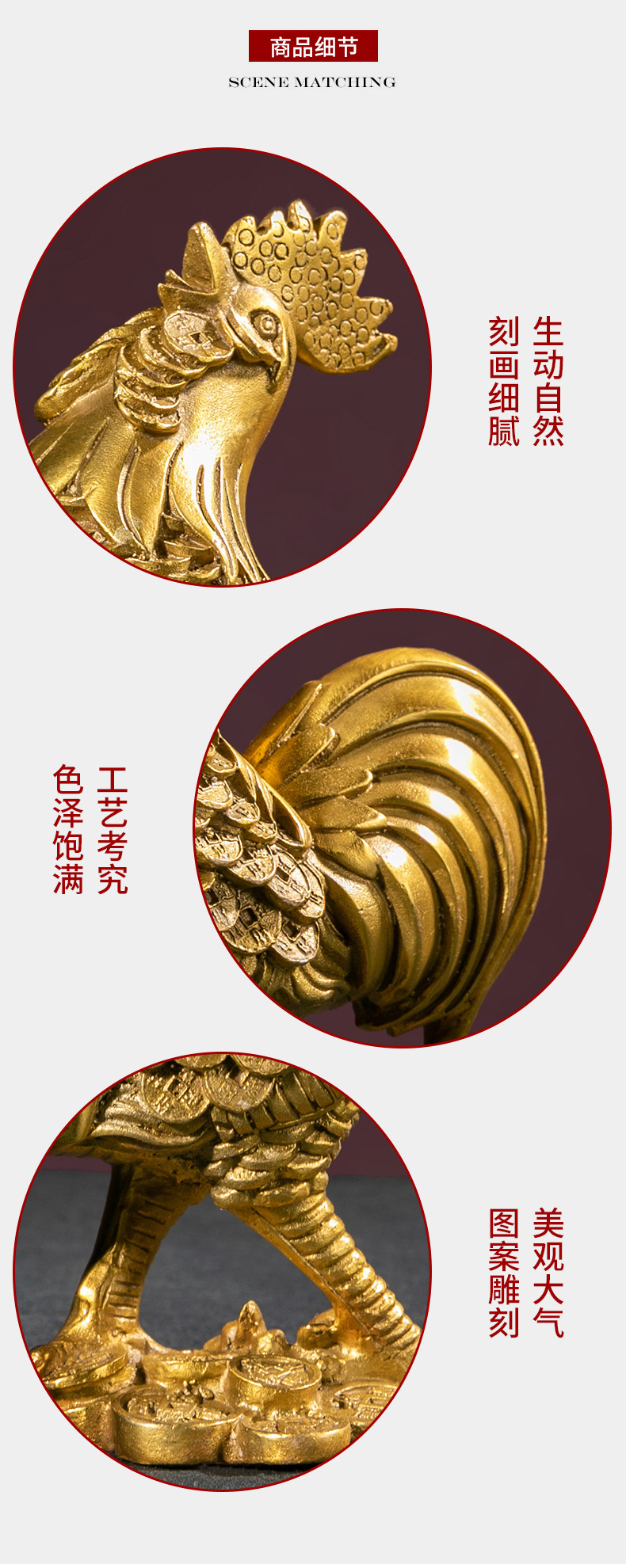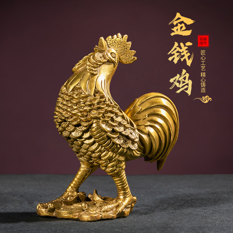 Boutique Handmade Pure Copper Money Chicken Ornament 纯铜金钱鸡摆件 家居办公室工艺品装饰品摆件