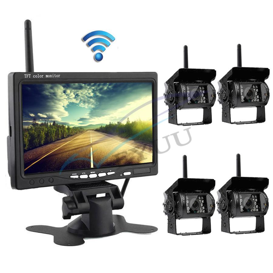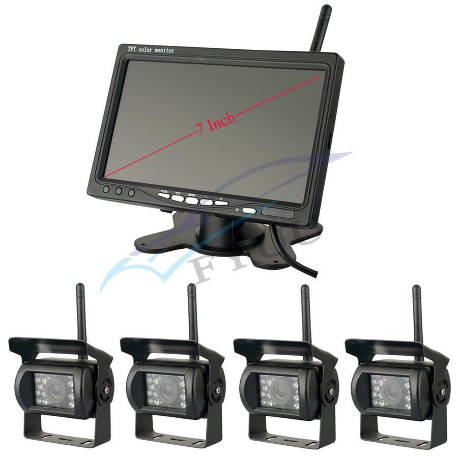 Car Bus Truck Wireless 4 Backup Camera +7" LCD Reverse Monitor Assistance System