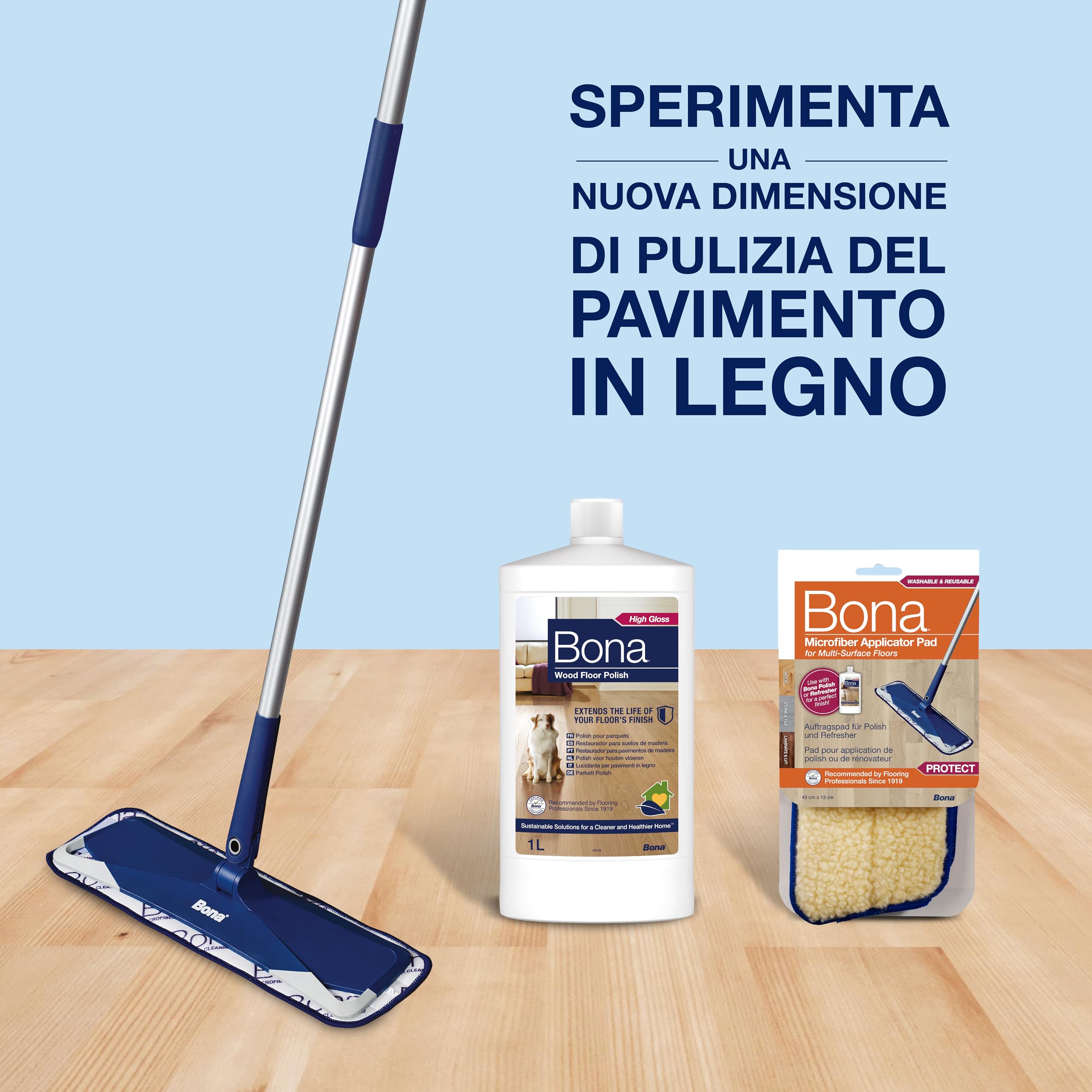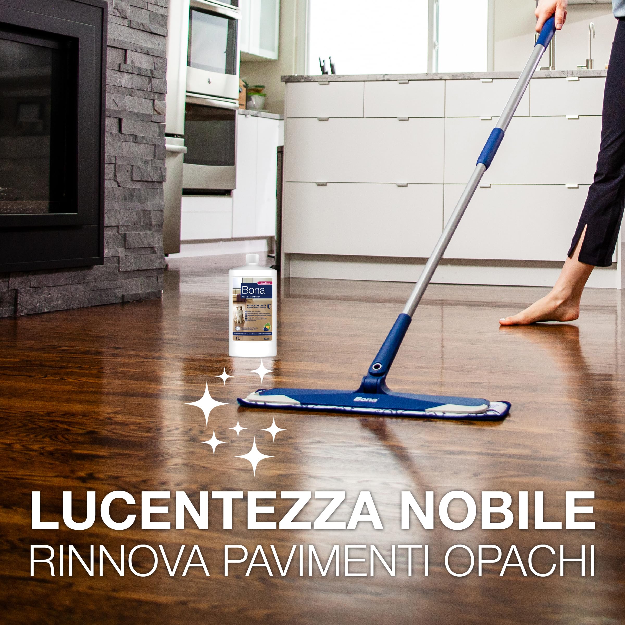 Bona lucidante per parquet 1 L, lucida pavimenti, prodotto per laminato, lucida, trattamento, cera, cura