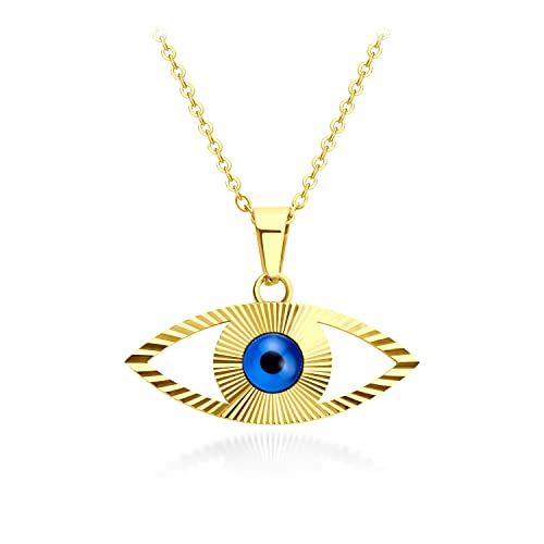 ✔️ DESIGN - Exclusive 555Jewelry unisex evil eye necklace, this stainless steel evil eye necklace is designed with delicate light reflecting grooves in a mirror polish finish and a blue Czech crystal eye. It is complemented with a beautiful cable link chain and extendable from 16 to 20 inches.