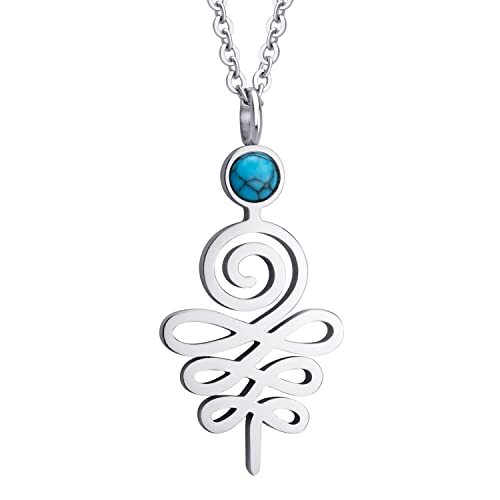 555Jewelry Stainless Steel Spiritual Symbol Unalome Turquoise Necklace for Women