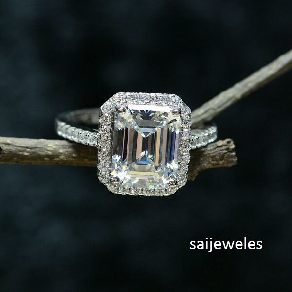 3CT Cushion Cut Lab Created Diamond 14K White Gold Over Engagement Wedding Ring