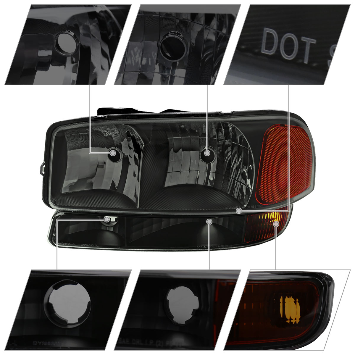 Smoke Headlights+Bumper Lights Fit 1999-2006 GMC Sierra 1500 2000-2006 Yukon XL