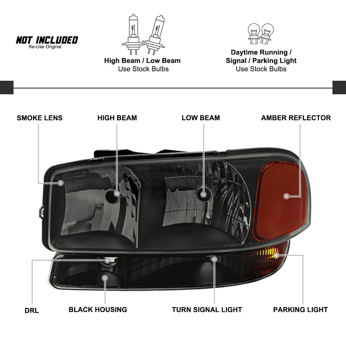 | Package Includes | 1 Pair of Headlights+Bumper Lights |