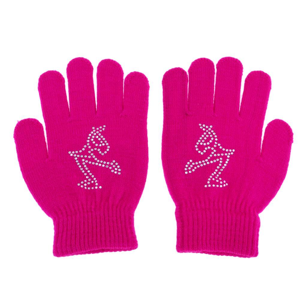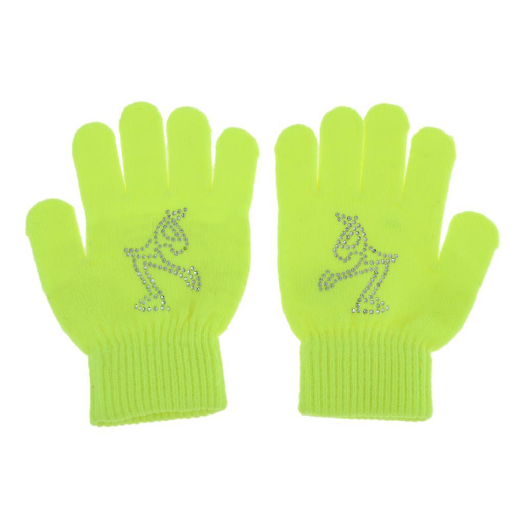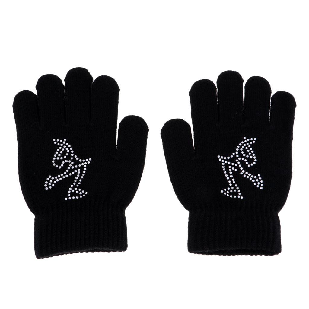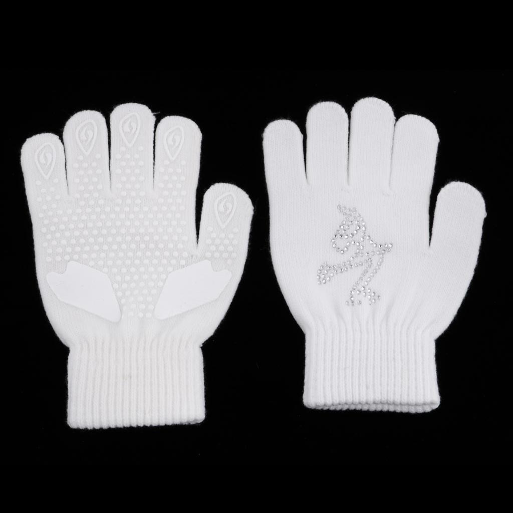 Made of 94% Acrylic, 5%Polyester, 1% Spandex, stretchy, durable and thermal Designed with rhinestones snowflakes, skating figure The palm equipped with anti- for slip silicone dots and gel pad for full protection for your kids Fashion, cute and shining design make it a great gift your kids/ friends Perfect for figure skaters