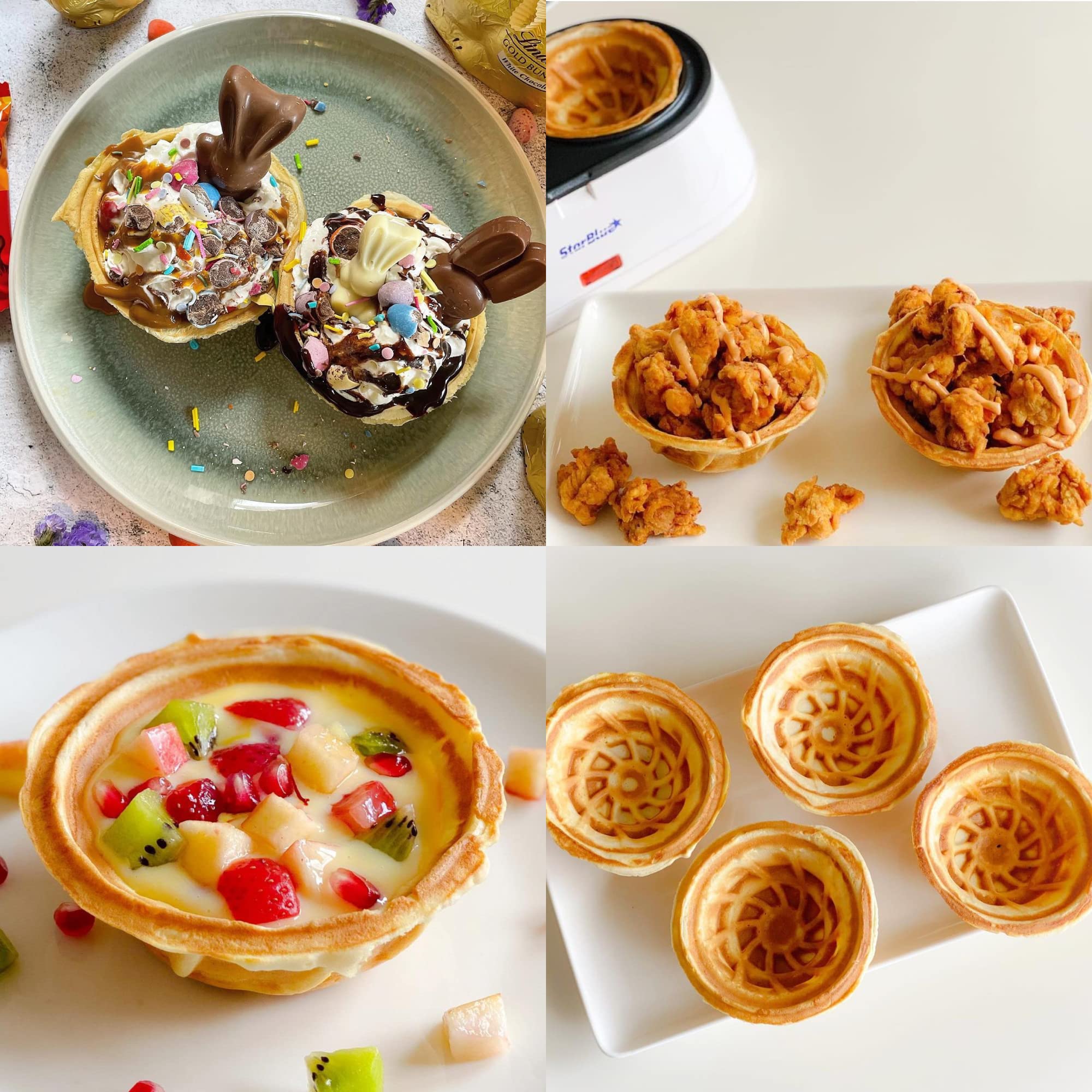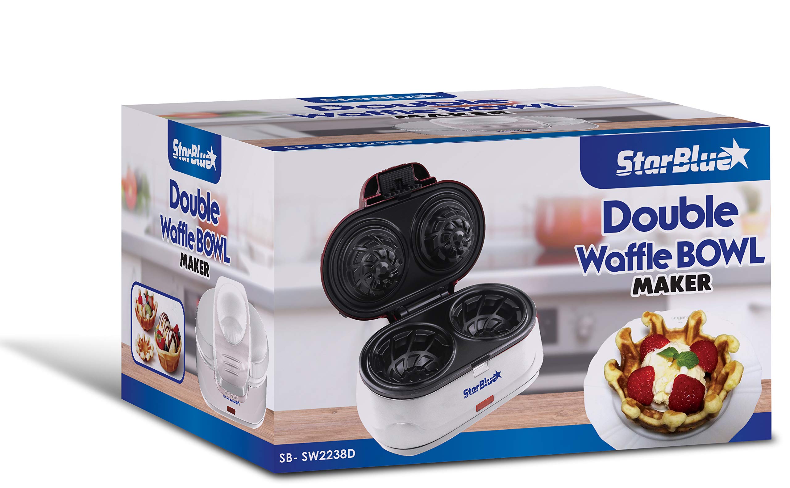 StarBlue - Macchina Per Waffle A Doppia Ciotola, Colore Bianco, Ideali Per Servire Gelato E Frutta, Idea Regalo, 220-240v 50/60hz 1200w, spina UK con adattatore UE