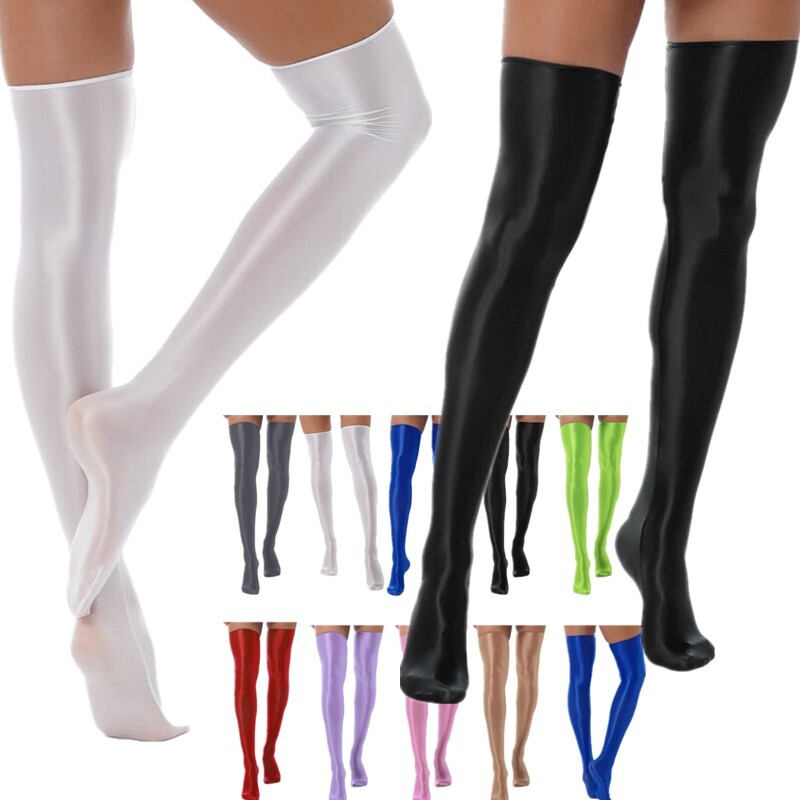 Sexy Women's Thigh Highs Socks Oil Glossy Stockings Elastic Silk Slip Pantyhose