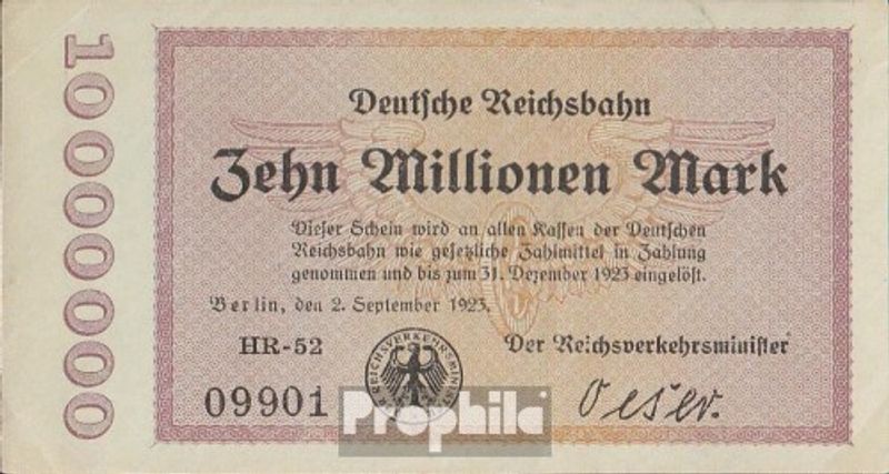 Deutsches Reich Pick-Nr: S1014 Inflationsgeld der Deutschen Reichsbahn Berlin gebraucht (III) 1923 10 Millionen