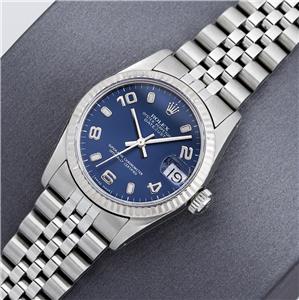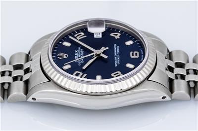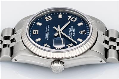Original Rolex Blue Dial Set With Factory Arabic and Index Hour Markers.