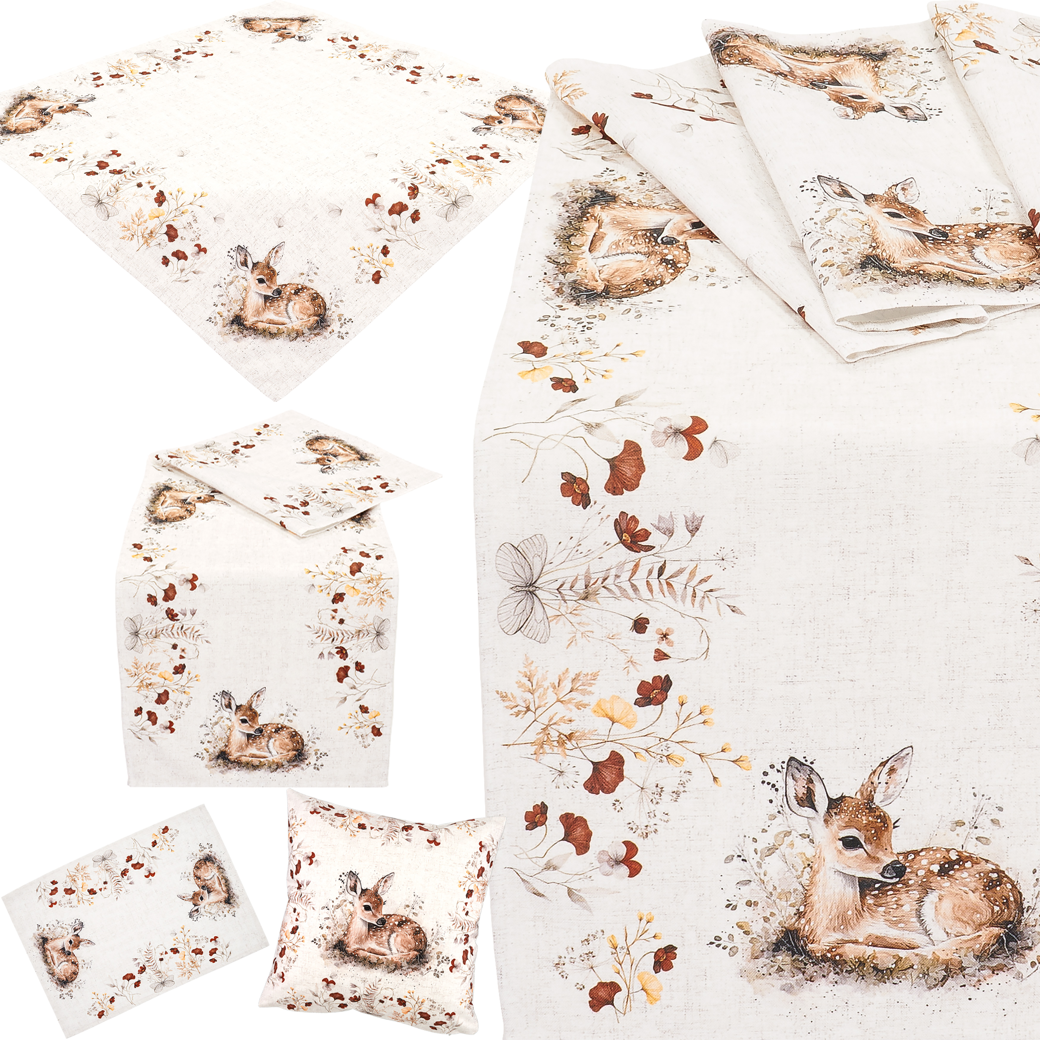 Herbst Tischdecke Tischläufer Kissenbezug Tischwäsche Herbstdekoration Rehkitz