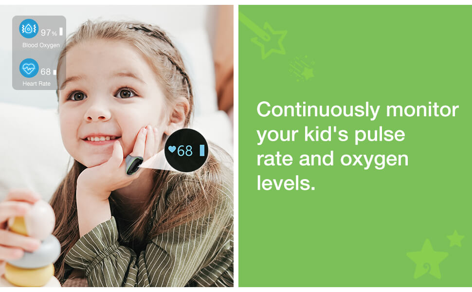 【Designed for Kids】Patented soft O2 ring sensor designed specifically for 3-10 year-old children is more convenient and won't fall off. Fits finger perimeter 1.7“- 1.9”/ 42-49mm. Oval shape with adorable star theme let the kids fall in love with it.