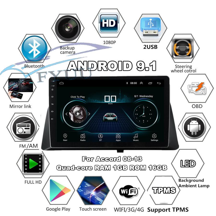 10.1" Android 9.1 Car Stereo Radio Player Wifi GPS Player For Honda Accord 08-13
