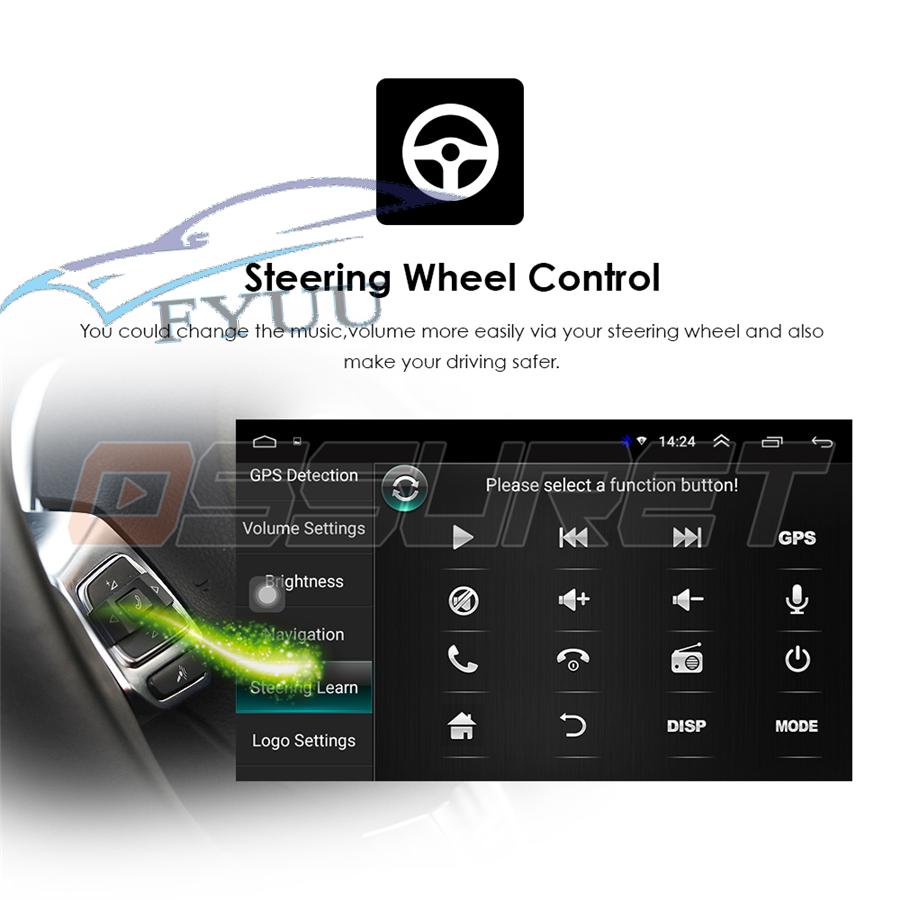 Setup | - WiFi/Hotspot/Bluetooth: Yes - Brightness level adjustable: Yes - Wallpaper: Wallpapers/Live Wallpapers/Gallery - Sound: Key Tone & Volume - Storage: Display Internal Storage/Nand Flash/Connected Device Storage - Apps: Running Apps display/force stop/uninstall - Security: Yes - Accounts: Yes - Languages and Input: more than 70 Languages and choose input method - Backup and Reset: Yes - Date and Time: Setting Date&Time by yourself or choose GPS/network-provided time - Accessibility: Yes - GPS: Yes, GPS application options/monitoring/sound mode/mixing ratio - Driving safety: Watching Video, Reversing X-mirror/Volume, Reversing Trajectory/radar Display, Rear view ruler - Amplifier: Rock/Pop/Jazz/Classic/Flat/Voice/Custom - Steering Wheel Control: Yes - About Device: Display Parameter Info. |