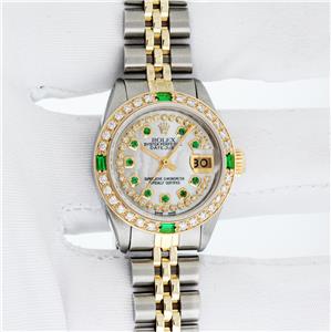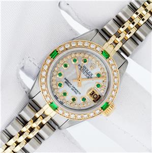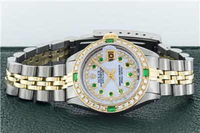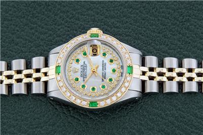 Custom Mother of Pearl Dial with String Diamonds and 10 Custom Added Round Emerald Markers.