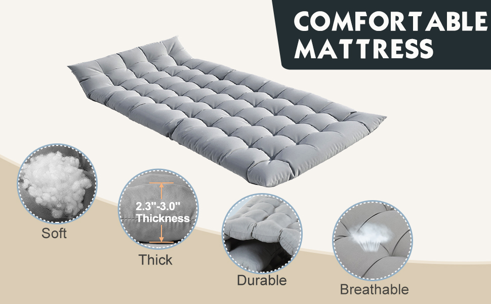 2-Sided Design of the Mattress: One side is blue and the other is gray for the mattress.You can use this sleeping cot both inside and outside.Such as office naps, travel rest or sunshine beach use.