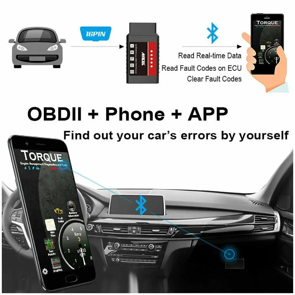 ANCEL ELM327 V1.5 Car Code Reader PIC18F25K80 Chip OBDII Diagnostic Tool PK ICAR2 OBDSCAN Scanner For iPhone/Android Please select the correct version according to your mobile phone system 1. Bluetooth ELM327 only supports Android system, PC. * If you have an iphone, please buy Wifi ELM327.