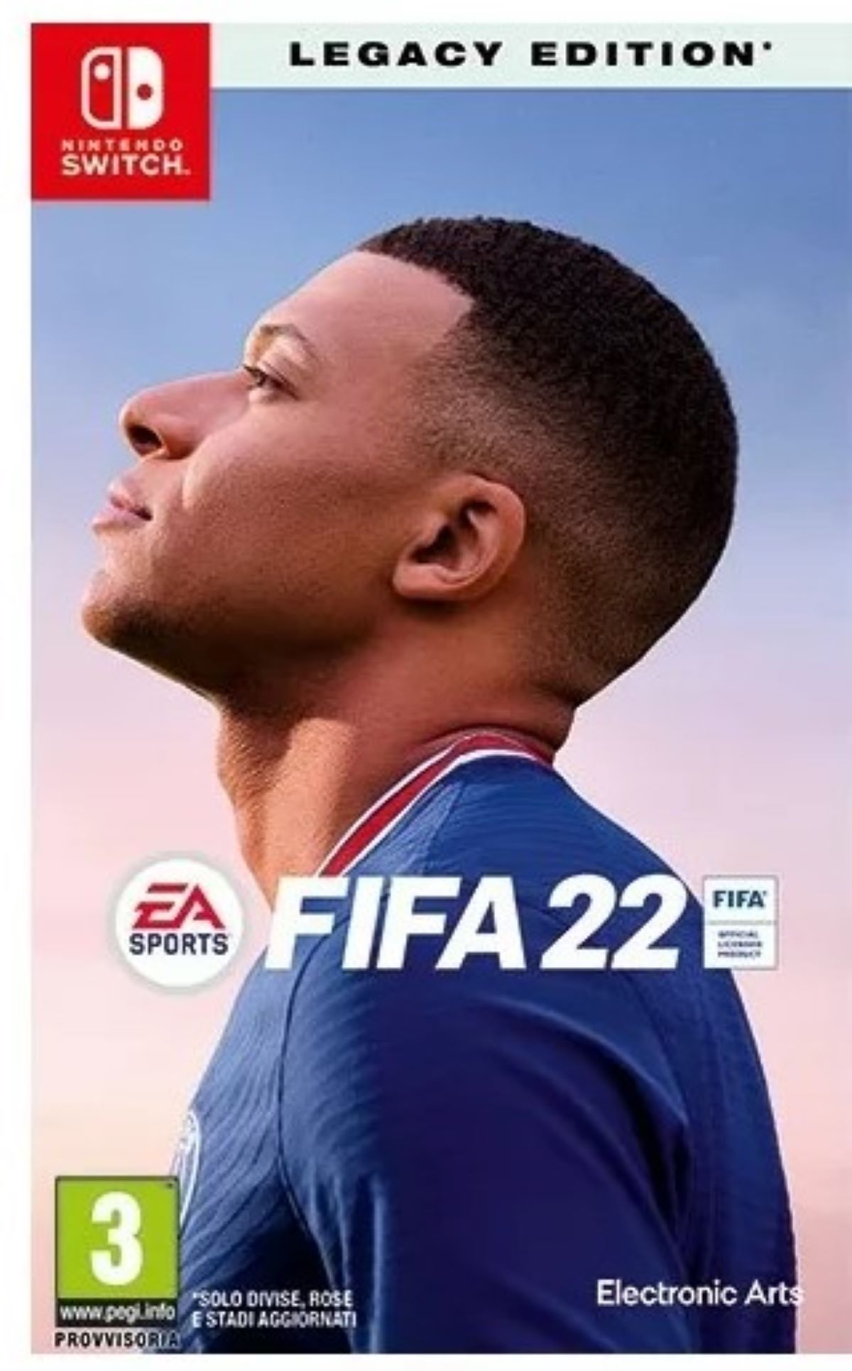 FIFA 22 Ultimate Team™ su Nintendo Switch™ rifletterà gli eventi del mondo reale attraverso un serie di campagne FUT durante la stagione.* GAMEPLAY FIFA 22 Legacy Edition presenterà le stesse caratteristiche a livello di gameplay già viste in FIFA 21 Legacy Edition, senza novità o migliorie di rilievo. PRESENTAZIONE FIFA 22 Legacy Edition offrirà una veste grafica aggiornata, con una nuova interfaccia di gioco e menu ridisegnati. MODALITÀ LEGACY EDITION Le seguenti modalità saranno presenti in FIFA 22 Legacy Edition con le stesse caratteristiche viste in FIFA 21 Legacy Edition. Calcio d'inizio Modalità Carriera Tornei: su licenza e personalizzati, compresa la UEFA Champions League Women’s International Cup Prove abilità Stagioni Online Amichevoli online Stagioni in locale. FIFA ULTIMATE TEAM FIFA 22 Legacy Edition includerà una serie di campagne FUT durante la stagione.* FIFA Ultimate Team includerà: Incarichi allenatore Stagioni Online e per giocatore singolo Tornei online e per giocatore singolo Draft online e per giocatore singolo Partita singola online Sfide Creazione Rosa Eroi FUT ICONE. Configurazioni console: Gioca a FIFA dove vuoi, quando vuoi e come vuoi. Collega la console al televisore e gioca in modalità singola o multigiocatore, o prova le stesse modalità in viaggio. Base fissa Modalità portatile Modalità da tavolo Multigiocatore locale. Supporto dei Joy-Con™ separati: Creati appositamente per la versione Nintendo Switch™, i comandi per i Joy-Con™ separati ti consentono di giocare con i tuoi amici quando vuoi, dove vuoi. Non servono periferiche aggiuntive, basta separare i controller Joy-Con™ per giocare in modalità multigiocatore, a casa o in viaggio. Il supporto dei Joy-Con™ in FIFA 22 Legacy Edition include: Modalità portatile Doppio Singolo Nota: FIFA 22 Legacy Edition supporta anche la configurazione Pro Controller. Stagioni in locale: prova una modalità di gioco esclusiva su Nintendo Switch™ con Stagioni in locale. Invita una persona vicino a te e tieni traccia di svariate statistiche nel corso di una stagione di cinque partite, in FIFA. *I contenuti FUT Live di FIFA 22 Legacy Edition per Nintendo Switch™ potrebbero variare rispetto a quelli di FIFA 22 per Xbox One, Xbox Series X S, PlayStation®4, PlayStation®5, PC tramite Origin, Steam e Stadia. |