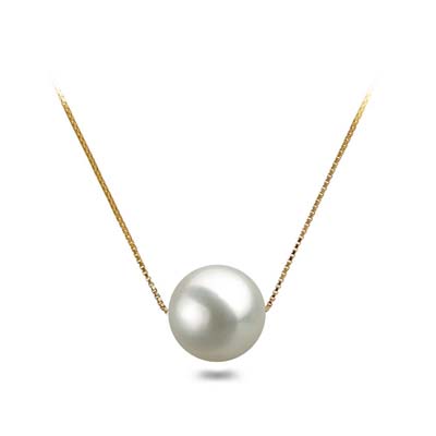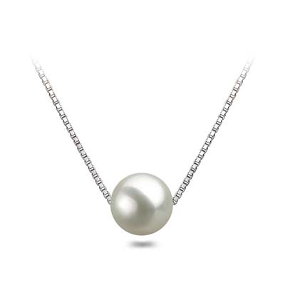 8.5mm, 10.5mm or 12.5mm South Sea Floating White Shell Pearl Pendant Necklace 16" or 18" 925 Sterling Silver Box Chain