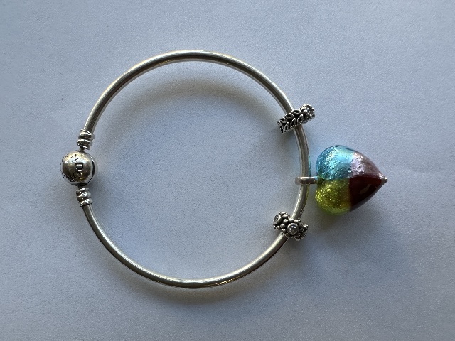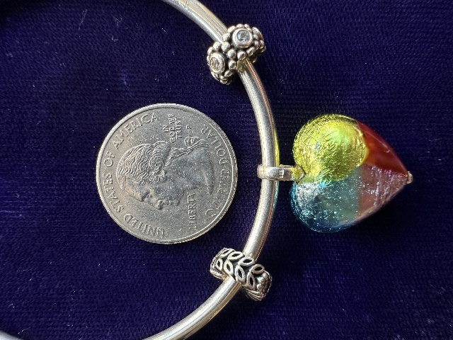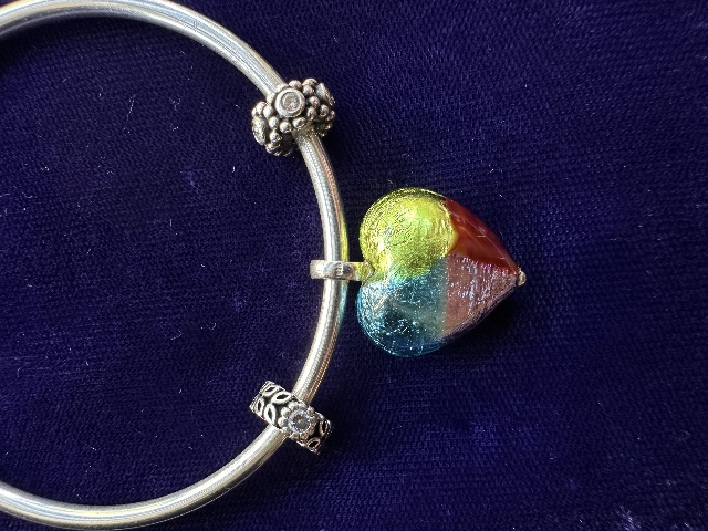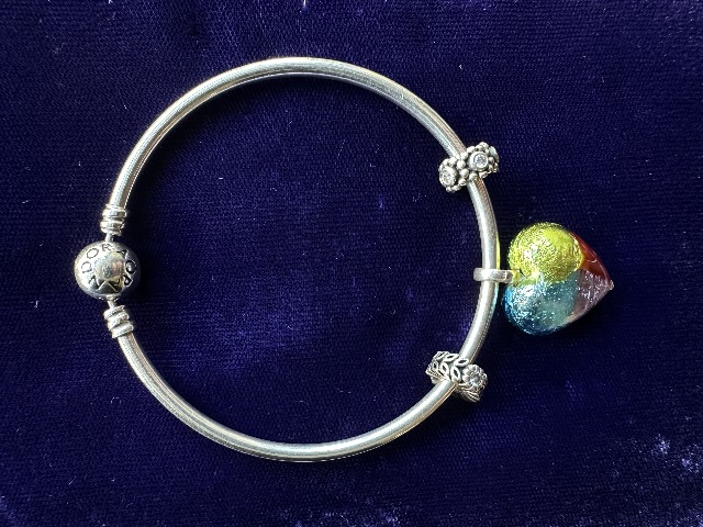 Pandora Sterling Silver Multi Color Dangle Heart Quartz Charm Bangle Bracelet 7”