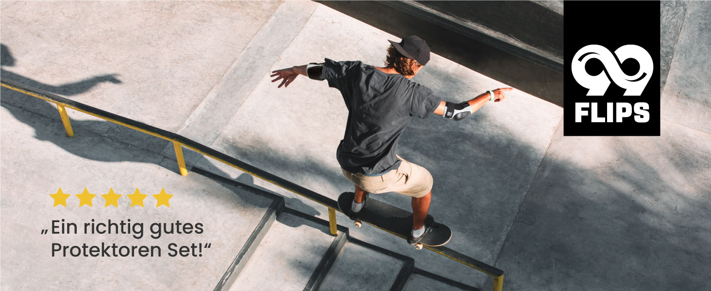 ✅ EINFACHE HANDHABUNG: Unser Schützer-Set ist einfach anzulegen. Dank der verstellbaren Träger sitzen die Schützer fest und rutschen nicht. Ideal für Rollschuhlaufen, Skateboarding oder Inliner-Fahrten. Mache mehr aus deinem Lieblingssport mit 99FLIPS