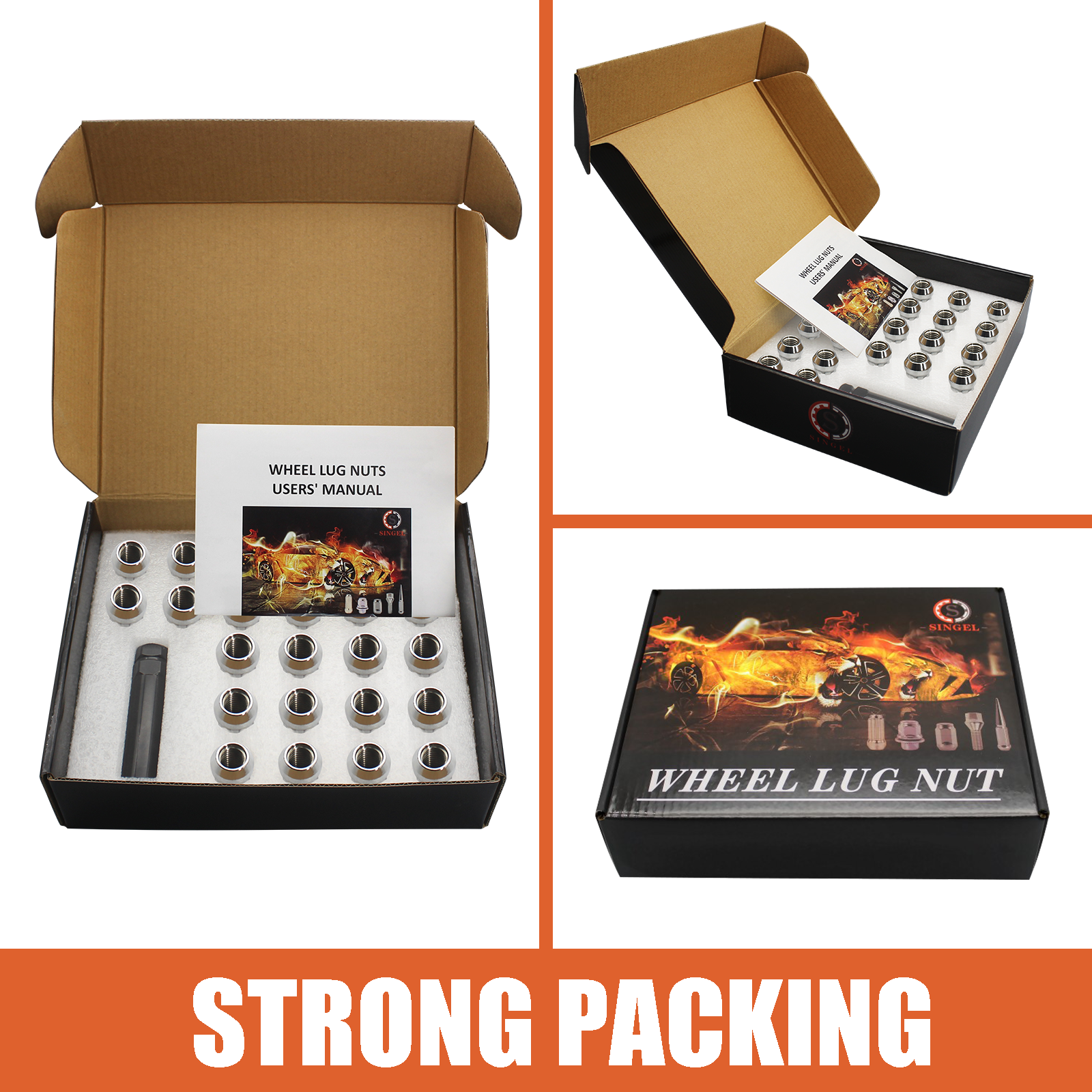 SSINGEL wheel lug sets are delivered in premium color carton package, and each wheel nut separately installed in the foam tray to reduce the chance of damage during transportation.