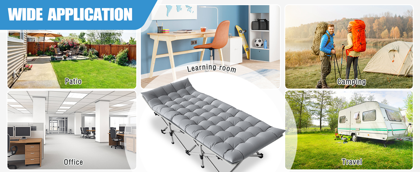 🏁【WIDE RANGE OF USES】:ABORON camping cot for adults is perfect for overnight hiking, trekking, hunting, road trip,home relaxing,or office break uses.A great companion to take to the Pool, Lake, RV, Campsite, Patio, Deck, Tent or Cabin.It can be used as a bed for your guest as well.Super convenient!!