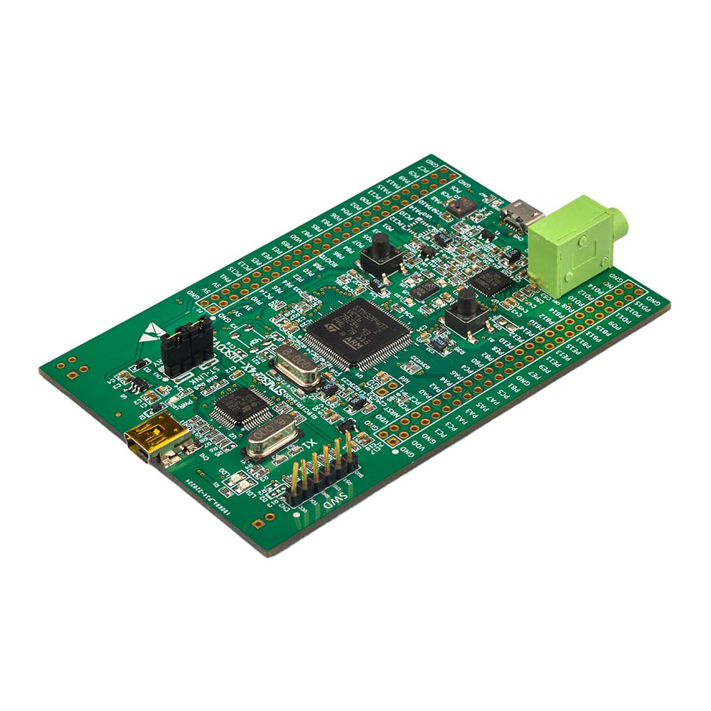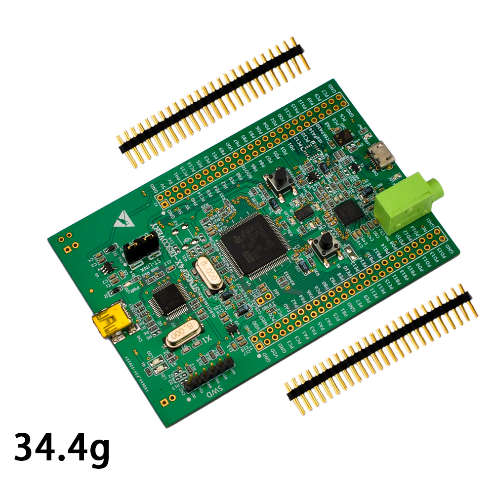 Development board based on STM32F407VGT6 development board design, integration with ST-LINK/V2 simulation downloader (but only provide SWD interface), remove youremulator or download it. Add more acceleration sensor LIS302DL, MP45DT02 digital microphone, loudspeaker drive and a micro-AB USB interface.