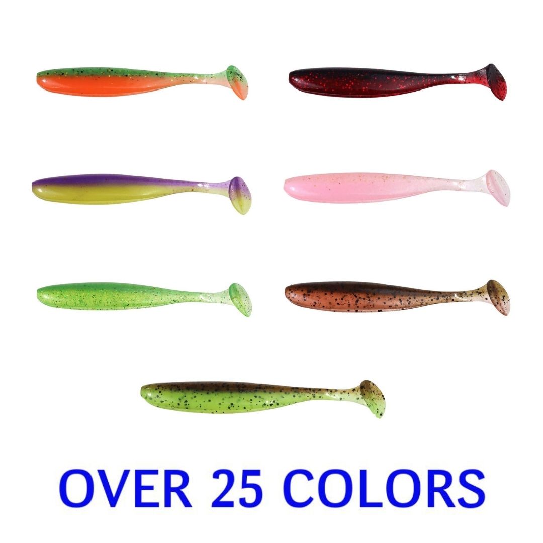 The Easy Shiner combines the body of the Shad Impact with the fantastic tail action of the Swing Impact. These versatile swim baits come in four sizes to match any fishing conditions. Keitech's original two-tone color injection process uses different types of salted plastics to achieve fantastic balance and action. These baits can be fished many ways. The 2"" is an excellent choice for Crappie and pan fish. The 3"" works great on a small Super Round Jig head and the drop shot. The 4"" has produced outstanding results on the jig head, Texas Rigged and the Alabama rig. Lots of big fish are coming flipping the 5"" and on the Carolina and Alabama Rigs. The Easy Shiner has a wide-wobbling rolling action that drives predator fish wild!