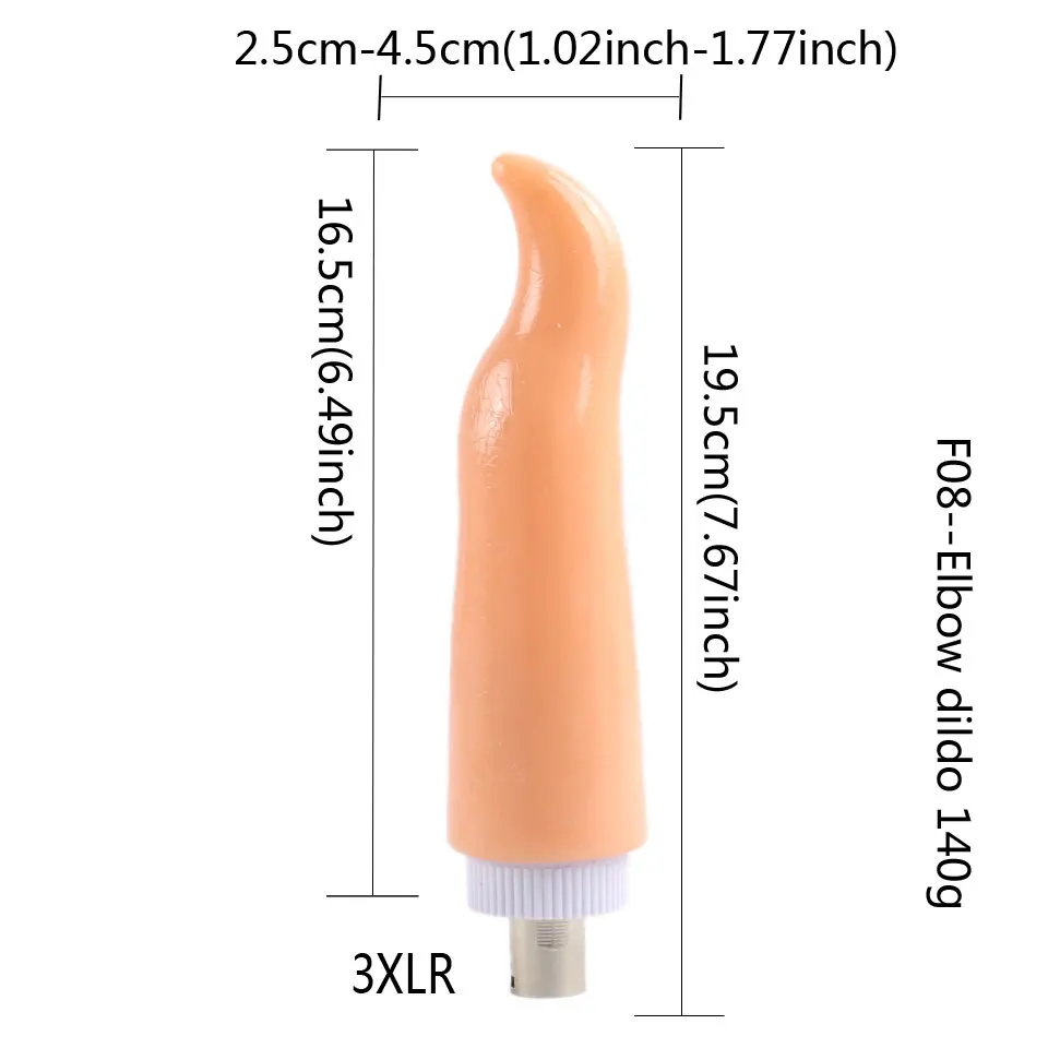 1 X F08:(elbow dildo)Total Length: 19.5cm ,Insertable Length: 16.5cm diameter 2.8-5.2cm;Weight: 140g